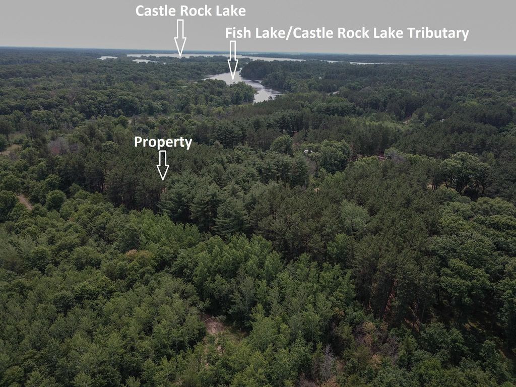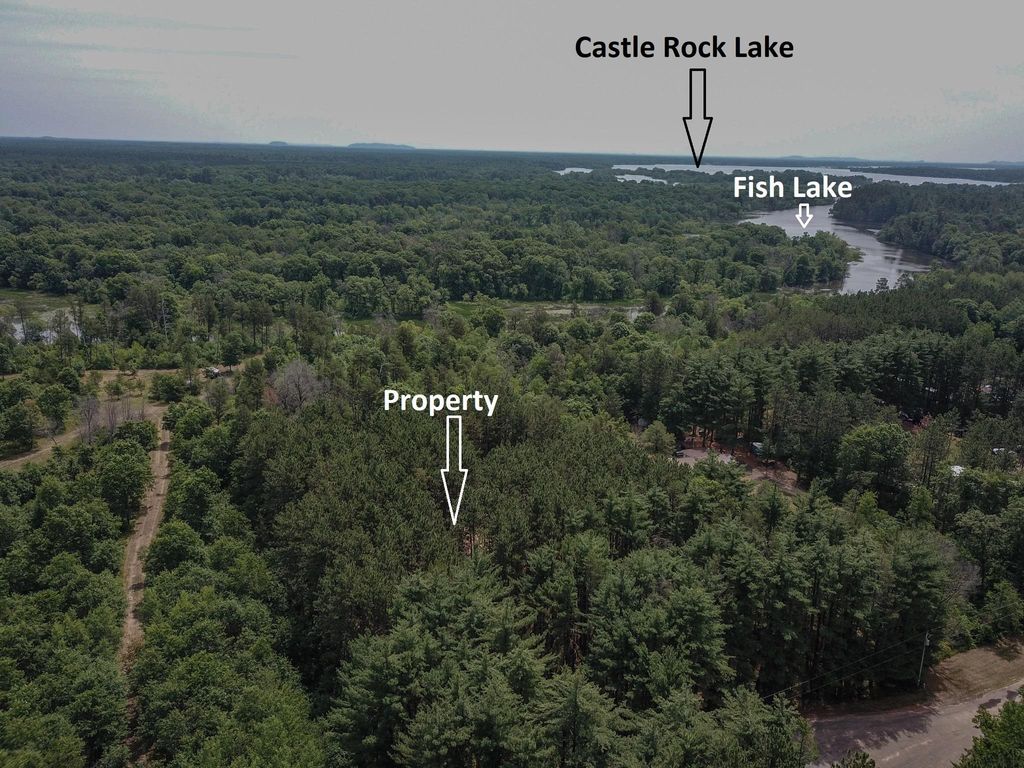 If you are looking for a house in the woods, this might be it. 5.41 acres of towering pines surround this property. It also borders 357 acres of Wi River Power Company Land- Public Land w/ Fish Lake running in the back- Castle Rock Lake/Wi River tributary waters. Great fishing spot! This house features 2 bedroom, 2 full baths, wood burning free standing fireplace, A/C unit installed 9/8/2023, wrap around deck with multiple stairs, small pergola with grape vines by the side door, drilled well installed in 2020, 12x18 storage shed, firepit & small fountain. Just skip & the hop from several boat launches & sandy beaches on Castle Rock Lake. Petenwell Bluff- famous hiking spot is only 1.5 miles away. Petenwell Dam is 3 miles away. On ATV & snowmobile routes. Short term rentals allowed!