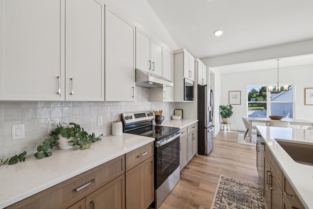 Welcome to this delightful 3-bed, 2-bath home that perfectly blends comfort, charm & functionality. Step in from the covered front porch into an open concept home plan with cathedral ceilings in the main living area centered around a cozy fireplace. The sun-filled dining room offers a cheerful spot to gather for meals. The beautiful kitchen features ample counter space & quality finishes making cooking and entertaining a breeze. The spacious primary suite is a true retreat, boasting two walk-in closets and a private en-suite bathroom. This split home plan boasts two additional bedrooms and full bath on the opposite side of the home, offering privacy in the primary suite. Step outside to enjoy the backyard deck, perfect for grilling, relaxing, or watching your dog roam freely in the pet-fri