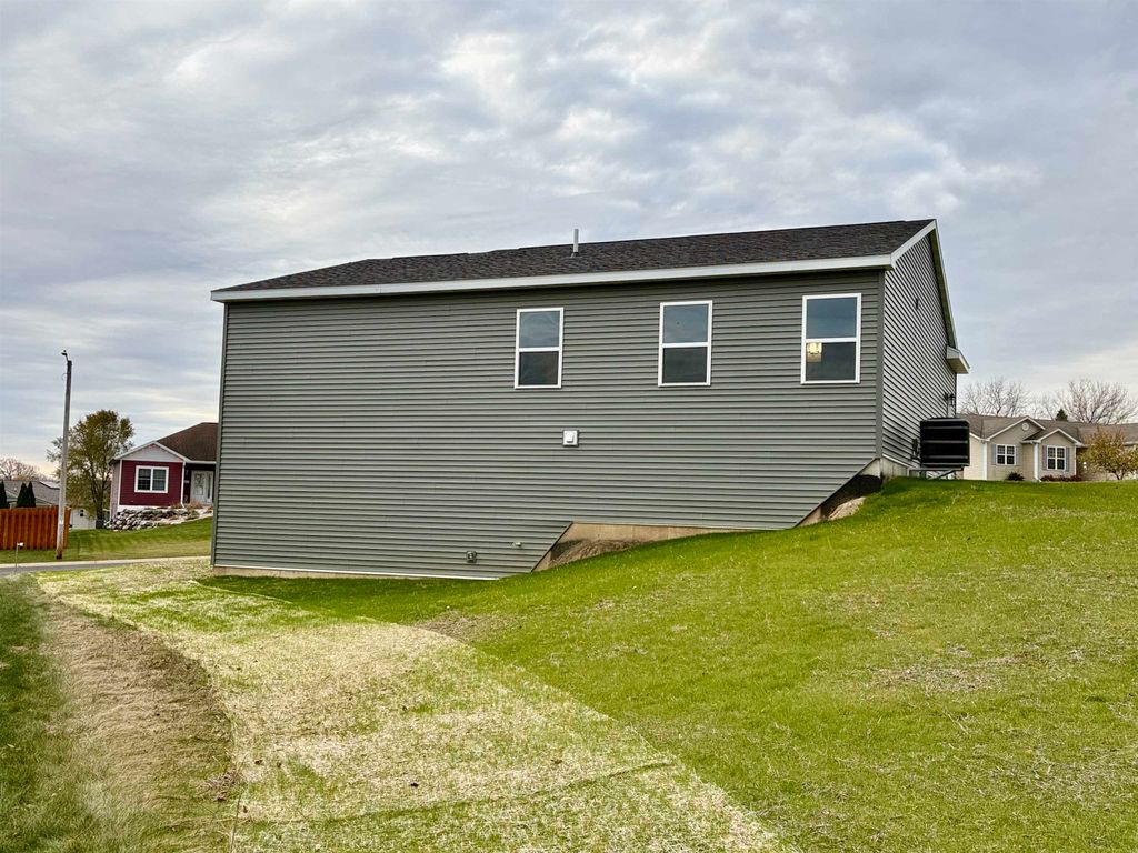Attractive New Homes Made Attainable. Brand-new single-family home with a finished walk-out basement. The "Wedgewood" plan offers a smart, efficient layout that lives larger than its square footage, with great flow and easy furniture placement. Features include a private primary suite with walk-in closet, a second bedroom with dual closets, a second full bath, and convenient first-floor laundry. The kitchen has a central island with breakfast overhang. Enjoy the covered front porch and elevated lot with pleasant views on a quiet street in an established neighborhood. The finished walk-out lower level adds a family room and office, plus rough plumbing for a future bath. Energy-efficient heat pump included. Floor plan design is copyrighted and registered with the U.S. Copyright Office. Unaut