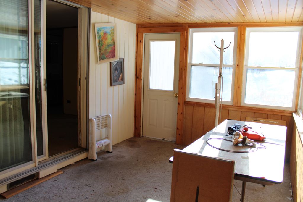 Welcome to relaxed living in the 55+ Pine Vista community. This home offers a spacious primary bedroom with an attached half bath, walk-in closet, and an enclosed sunroom (no heat or A/C)"”a lovely spot to enjoy natural light. The large living room with vaulted ceilings creates a comfortable, open atmosphere. With a functional layout, this home invites you to use your imagination and add your personal touches. A little TLC will go a long way in creating a space that truly feels like home. Additional features include an attached carport with a 12x15 storage/workshop area, a free-standing storage shed, and access to a community building. Monthly park rent $615 includes water, septic, garbage pickup, lawn care, and snow removal. Mobile home sold by Bill of Sale on leased land. Sale subject to