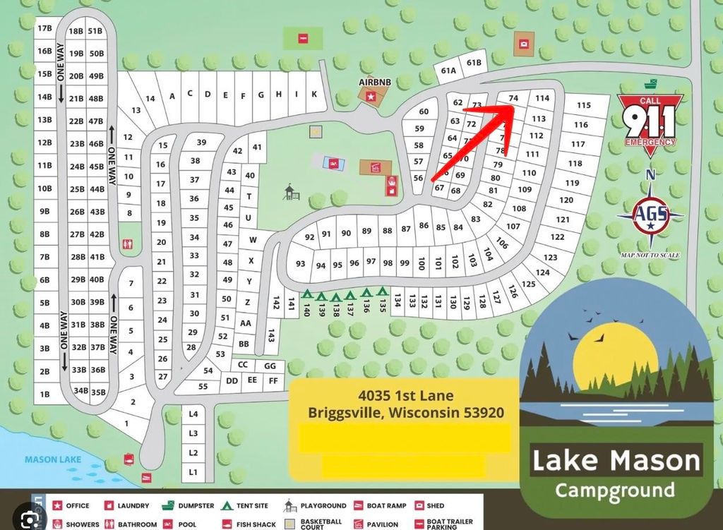 PERSONAL PROPERTY SALE. Enjoy easy, turnkey campground living with this newly remodeled park model located in the Lake Mason Campground Site #74. This personal property sale offers approximately 450 square feet of living space with one bedroom and one full bathroom, thoughtfully updated and move-in ready. Everything shown in the photos is included in the sale, making this a fully furnished and hassle-free opportunity. The park model also features a deck, providing a great space to relax, entertain, or enjoy the outdoors. Annual lot rent is $2,700, making this an affordable option for a seasonal retreat, weekend getaway, or summer escape near Lake Mason.