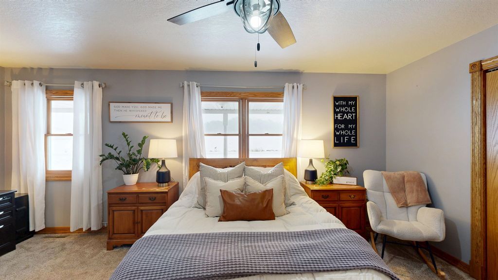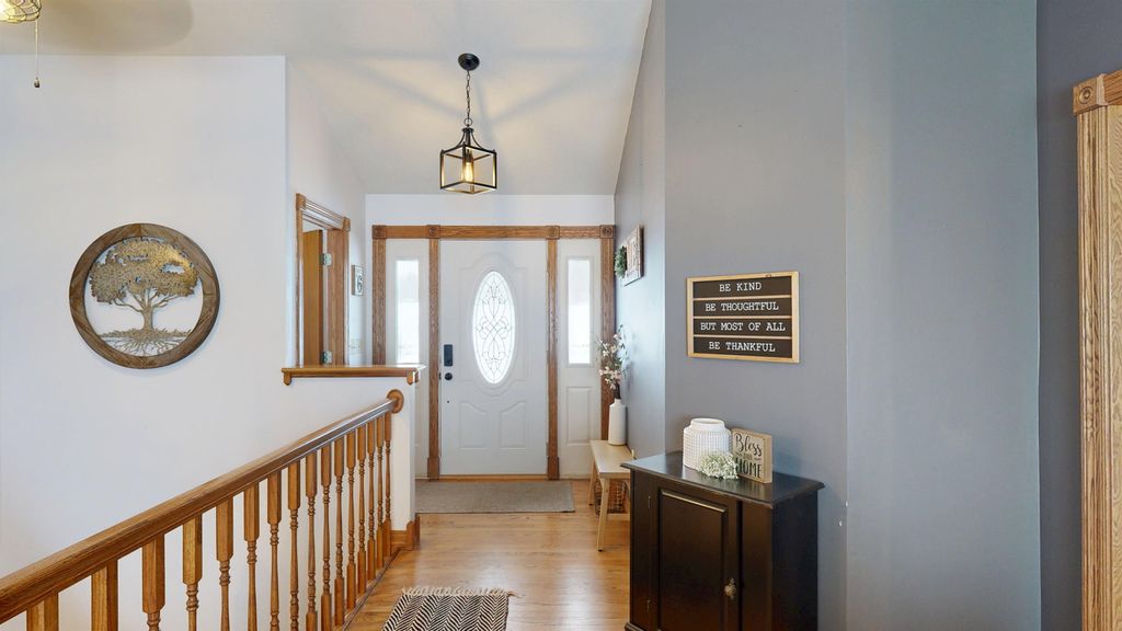 This beautiful modern home located just five minutes from Sparta perfectly blends style, functionality, and convenience. Set on three acres, the property offers an expansive backyard perfect for recreation or hobby farming. Inside you'll find an open-concept layout with vaulted ceilings on the main level, 9 foot ceilings on the lower level, and ample natural light, creating a bright and welcoming atmosphere. Everyday living is made easy with laundry and a kitchen on each level, central vac, and a heated two-car garage with the added benefit of a carport for extra parking or storage. Situated 10 min from Bangor, 15 min from West Salem, and 20 minutes from Onalaska, this home provides peaceful country living with quick access to nearby communities and services. This expansive home offers exc