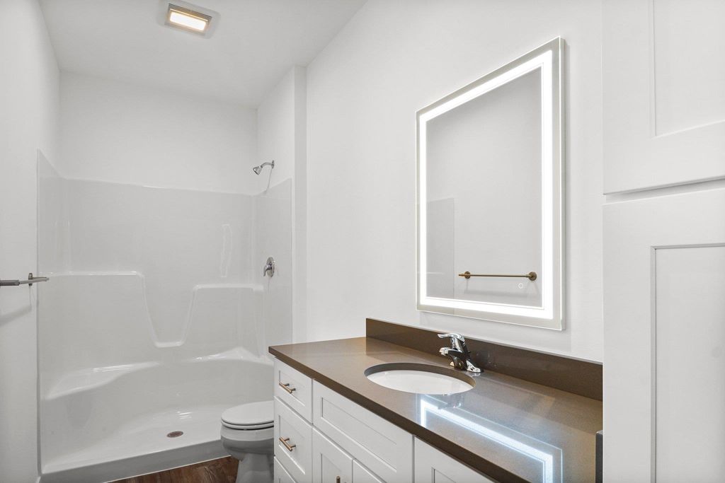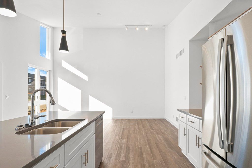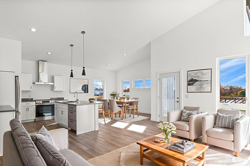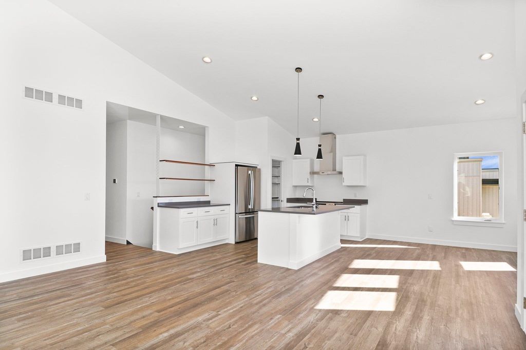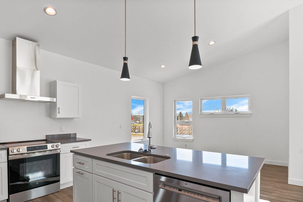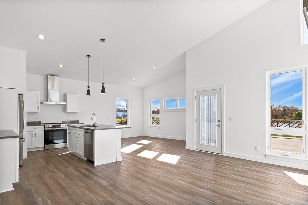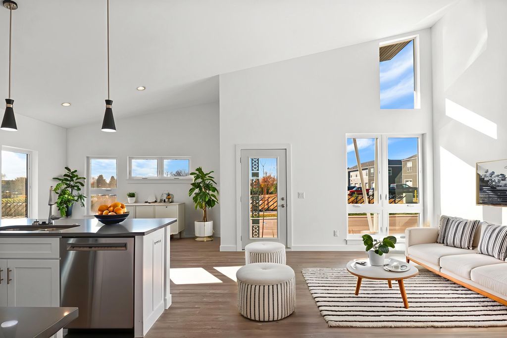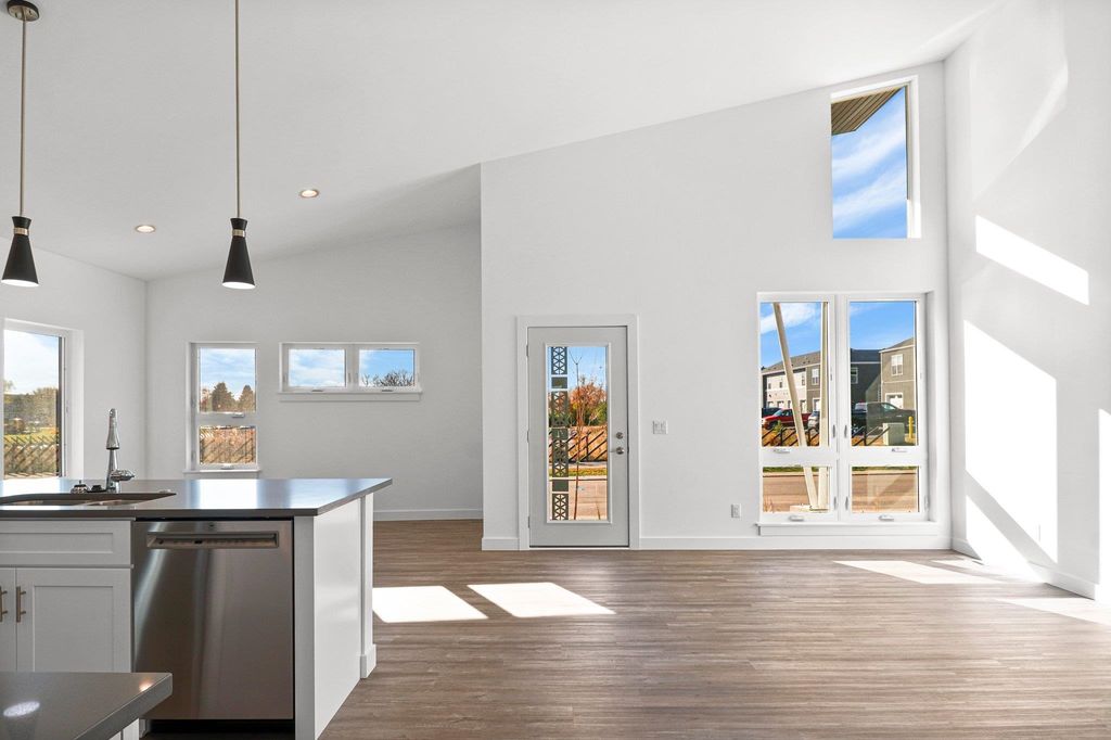 The MIDCENTURY MODERN 2nd edition highlights clean lines and timeless style. A vaulted, light-filled living area connects to a sleek kitchen with quartz island, pantry, and hardwood details. The main floor includes a primary suite with walk-in closet plus two additional bedrooms and full bath and a lower level ready for future finish. Energy-efficient appliances, Smart Thermostat, LED lighting, high-efficiency HVAC, and pre-wiring for future solar and EV charging. Point Gardens is the first ever Focus on Energy Certified Neighborhood, thoughtfully designed for sustainability and community connection. Enjoy 13 acres of parks and trails, future wildflower fields, and a garden for every home, including one year of Burpee seeds!