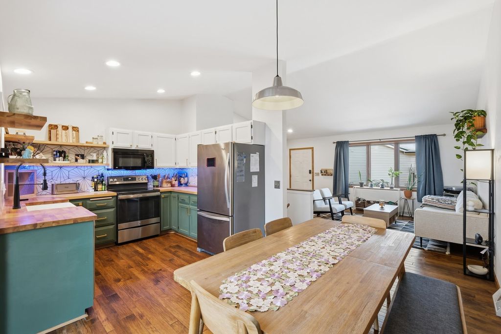Move-in ready and ideally located, this well-cared-for home blends style, comfort, and convenience. The bright main level features vaulted ceilings and an inviting living space, while the kitchen brings personality with butcher block counters, floating shelves, and farmhouse sink. The fully finished lower level with full windows adds tons of useful space with an extra bedroom, two spacious living areas, a kitchenette, gas fireplace, and storage. Extensive updates throughout include a new dual-stage furnace (2024), refreshed kitchen and exterior (2020), updated lighting throughout (2024), and newer carpeting + flooring (2023). High Point Park is steps from the driveway, while errands to over 10 grocery stores and markets are all ten minutes drive or less away. Quick access to the Beltline m