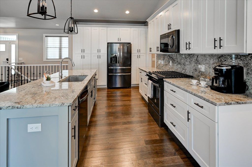 So many upgrades! Great open floor plan features luxury vinyl plank flooring, tons of natural light, gas fireplace, vaulted ceiling, kitchen with custom cabinetry and granite backsplash. Primary bedroom suite has a tray ceiling, large walk-in closet with custom organizer, a walk-in tile shower and dual vanities. Finished lower level has a great entertaining area with kitchenette/wet bar, large living room plus a bonus room/den, full bathroom and 4th bedroom. Seller has added custom blinds (cost $10,000), a fence, additional landscaping with concrete edging and stamped colored concrete patio. Convenient location near schools, shopping, restaurants and more.