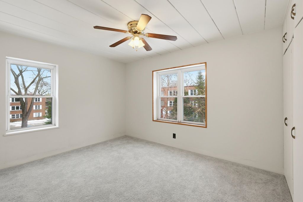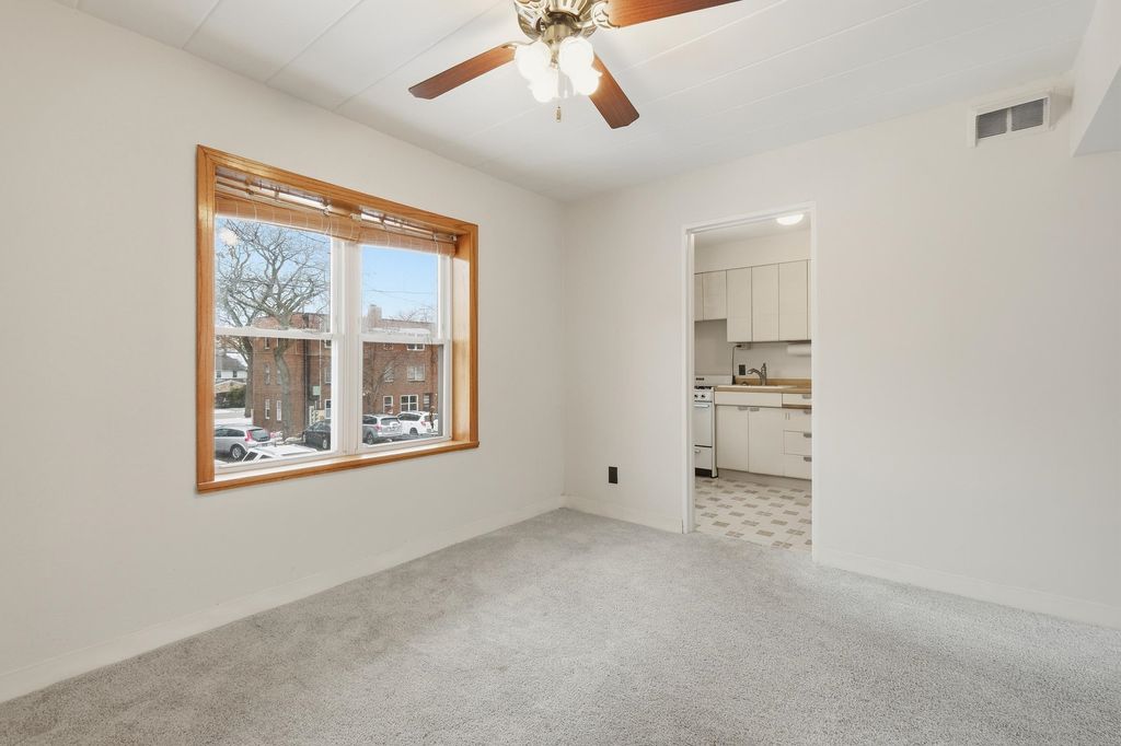 This charming condo blends classic character with everyday simplicity. Lush carpeting and large windows bring warmth and natural light into the living space, creating an inviting place to relax or entertain. The kitchen offers efficient functionality, with everything you need within easy reach, while the dining room is perfectly sized for casual meals or hosting friends. Two comfortable bedrooms provide flexibility for restful nights, guests, or a home office. A full bath, private storage unit, and shared laundry add practical convenience. Smart, built-in storage throughout unit makes daily living a breeze. Outside, enjoy common green space and easy access to the bus line, making daily routines effortless. With brick construction, professional management, and low maintenance living, this c
