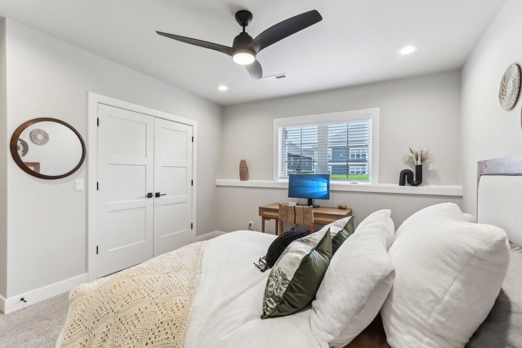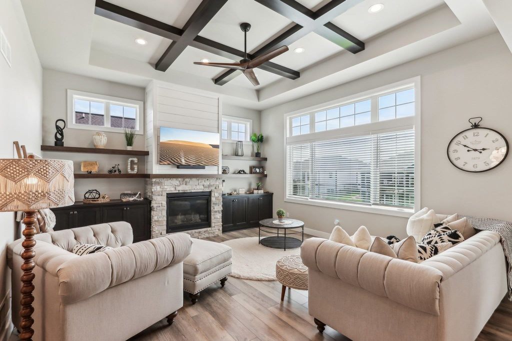 Show stopper! Wait until you see this stunning 3739 sq/ft, 4 bdrm, 3.5 bath 2022 PARADE HOME! Walk in and notice the beautiful great rm with a striking fireplace circled by built-ins and floating shelves-also highlighted by an impressive coffer beamed ceiling. Modern LVP flooring flows thought the entire area and into the stunning quartz kitchen w/enormous island & huge working pantry! Sunlight from the magnificent 4 season rm floods the entire area! Popular split bdrm- King size Master w/Luxurious Bath &Modern Tiled Shower! French doors open to the 1st flr office! Big western windows beam light through the enormous LL family rm w/wet bar! LL Workout Room, 4th bdrm. & bath! 3 car gar is heated & insulated w/finished walls! Attention to detail & top quality!