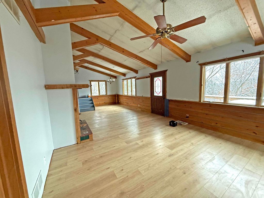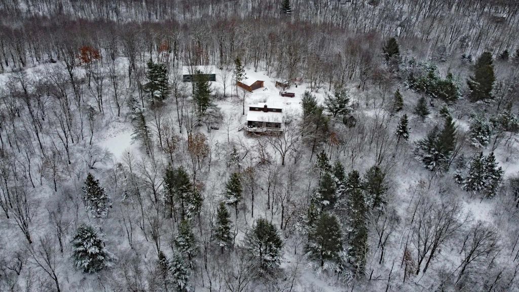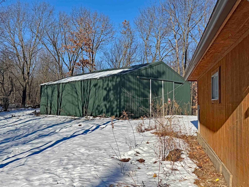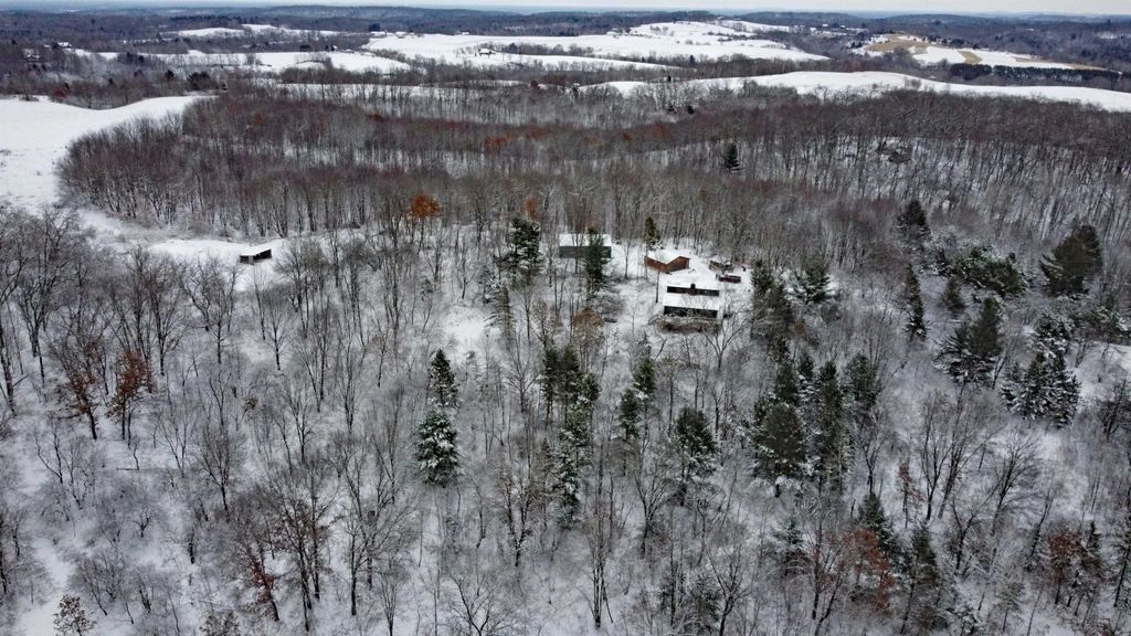 Perched on a scenic hilltop just outside Elroy, this 18-acre property is all about space, views, and potential. Wake up to rolling countryside, roam your own fenced pastures, and unwind with access to Alpine Lake"”a private, 20-acre no-wake lake perfect for quiet paddles, fishing and peaceful swims from the sandy beach. The 2-bedroom, 2-bath home is paired with a charming one-room cabin and a lineup of outbuildings that support a true rural lifestyle: horse barn style pole shed, playhouse, chicken coop, and animal lean-to. Whether you're dreaming of hobby farming, a weekend retreat, or a full-time country escape, the bones are here. Inside, the home reflects years of pet ownership, with flooring and drywall ready for replacement"”an opportunity to customize finishes exactly to your taste and