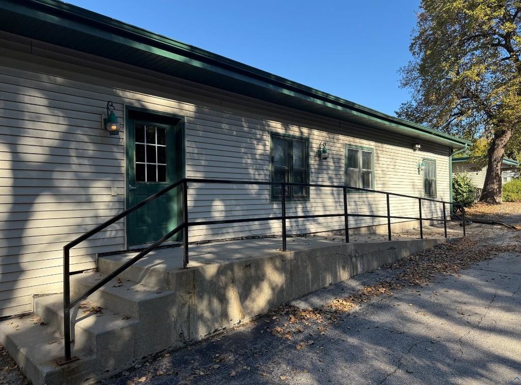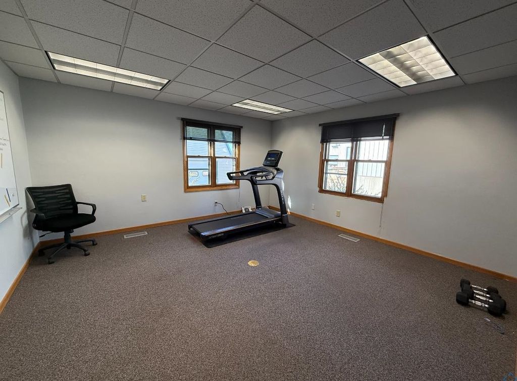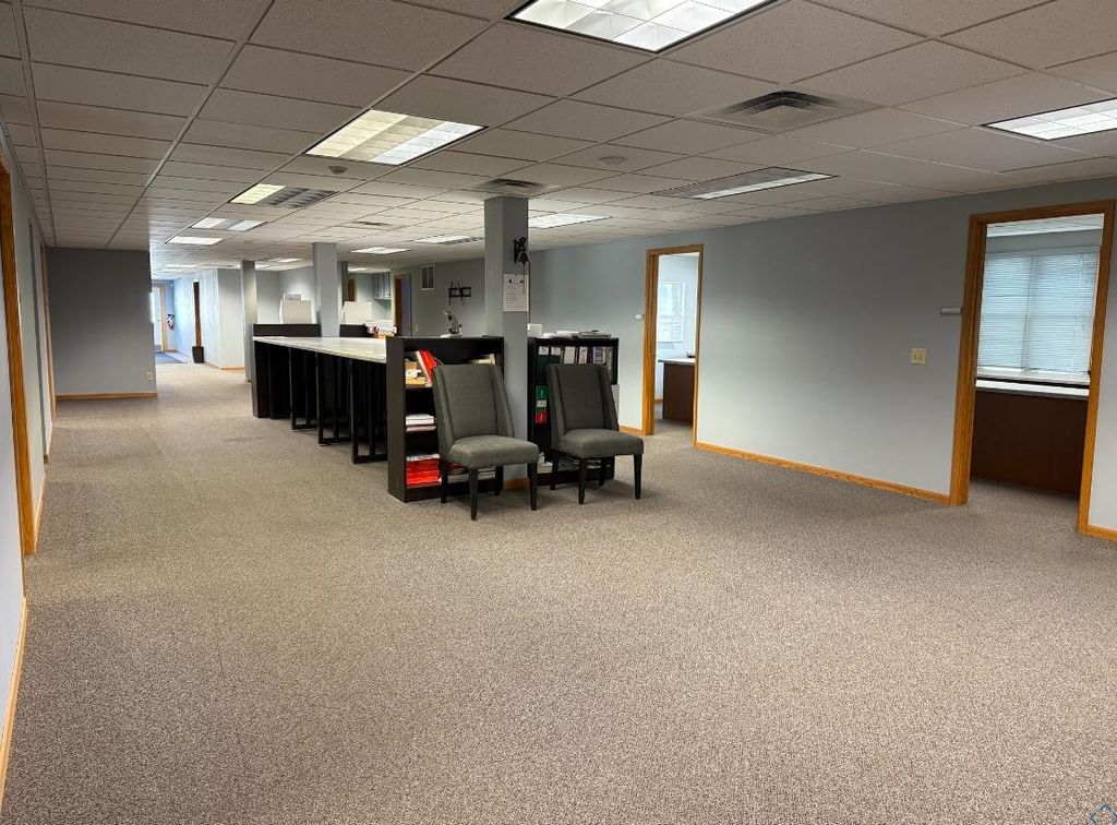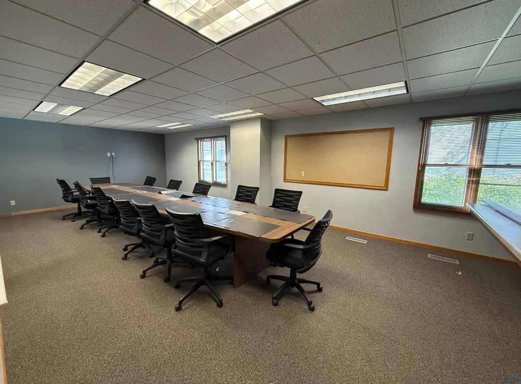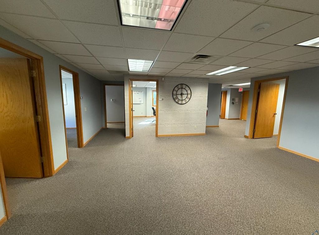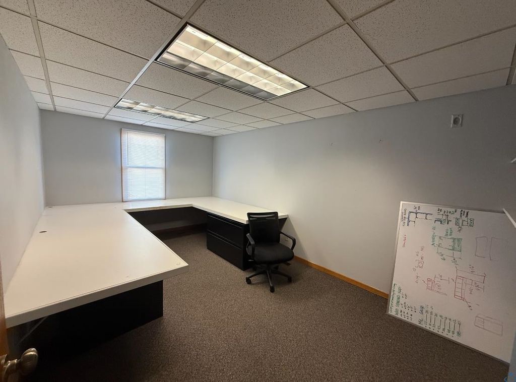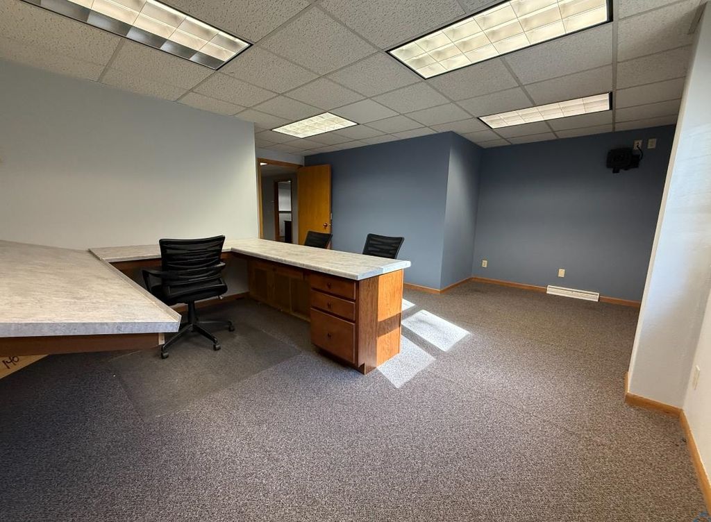 4,500sf office with windows on all 4 sides. There's open space in the middle, exterior offices, 2+ conference sized rooms, kitchenette with a sink and drinking fountain, and 2 private restrooms. Parking spaces are available right outside the front door. Located 2 miles North of the airport. Signage available.