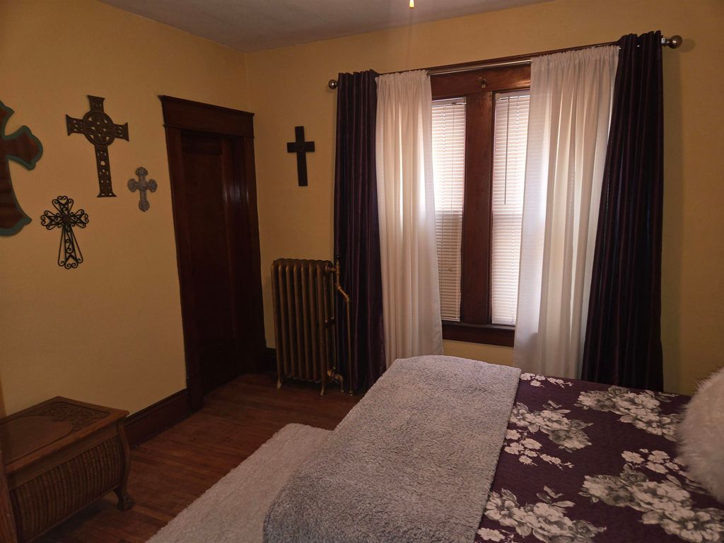 Charming bungalow featuring 5 bedrooms and 2 full baths, filled with timeless character throughout. Unique details include a built-in hutch, a family room with fireplace, and an inviting front porch. The spacious living room offers flexibility for both living and dining areas and includes a window seat. The main level features an additional family room, large foyer, main-floor bedroom, open historic staircase, and convenient main-floor laundry located in the full bath. The upper level offers four nicely sized bedrooms and a second full bath. The basement provides ample storage space and includes a separate side entrance for easy access. Exterior features include a large front deck, side porch, and a one-car detached garage. A home with character, space, and functionality.