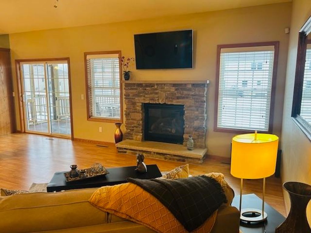 Welcome to this custom 5 bedroom ranch home nestled in the sought after Village of Cottage Grove. Enjoy the exceptional lay-out in this beautifully remodeled residence without the 'new-home price'. Spacious living with a soaring cathedral ceiling, ledgestone gas fireplace, & walkout to the large composite 3-season porch which overlooks the expansive backyard. Beautiful tile, LVP flooring, & new carpeting throughout. The chef's kitchen features NEW stainless-steel appliances, granite countertops, snack bar, large pantry, huge island, & tons of cabinets. A few steps away is the main-level laundry room with sink, storage, & NEW washer/dryer. The main level primary en-suite offers a spa-like feel with a walk-in shower, whirlpool tub, & huge walk-in closet. Lower-level features 2 more big bedro