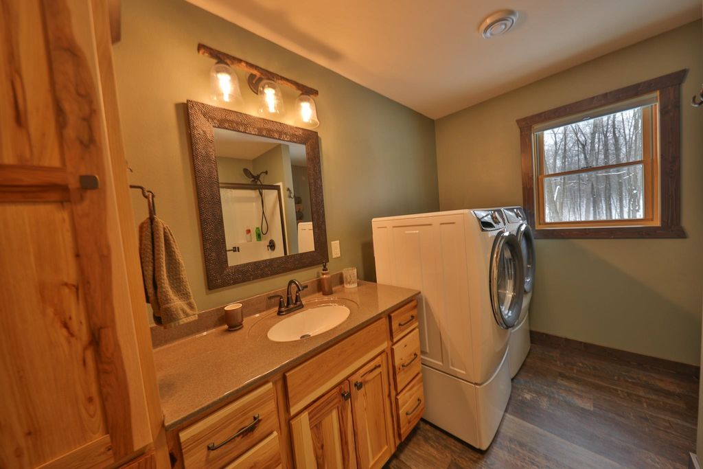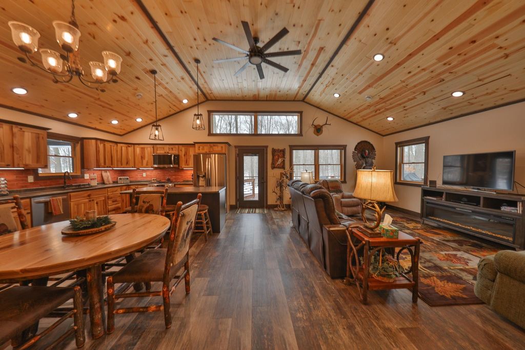 Tucked off a dead-end road in Clark County, WI, this premium 65± acre hunting and recreational property offers privacy, trophy whitetail habitat, and a brand-new custom cabin built on slab in 2024. The 1,200 sq ft lodge features 2 bedrooms, 1.5 baths, in-floor zoned heat, furnace, central air, air exchanger, Anderson windows and doors, custom hickory cabinets, LG appliances, and a 3x6 island. A wrap-around deck, patio, and heated 670 sq ft garage complete the improvements. The land is loaded with deer sign, hardwood ridges, trails, waterways, ATV access, multiple treestands, and a custom ridge-top box blind. Surrounded by extensive county land and quality neighboring habitat, this turnkey property is ideal for hunting, recreation, or a full-time retreat.