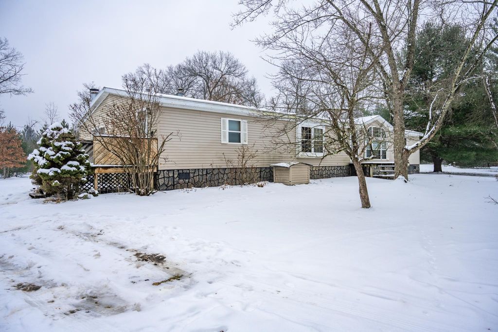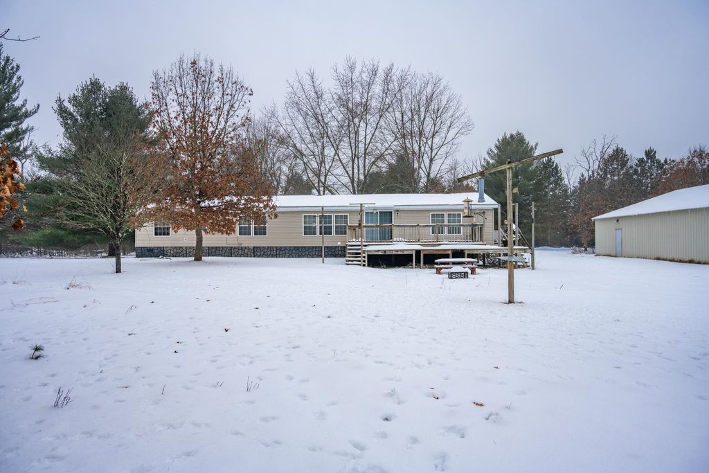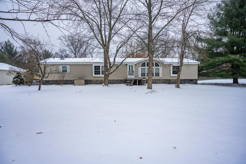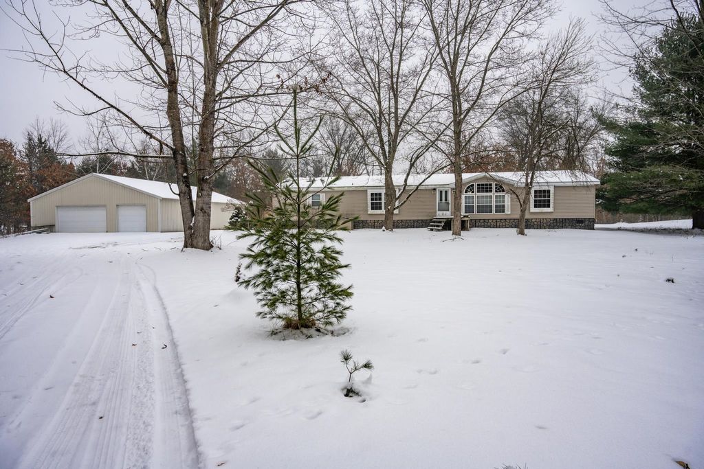 Spacious country living with this 3 BR, 2.5 BA 2180 sq. ft. Manufactured home situated on 4.58 peaceful acres. The home offers a comfortable and functional layout. Large kitchen with pantry storage. A wood burning fireplace in one of the 2 living areas. Large primary bedroom with private ensuite. Large closets for lots of storage. A 40x60 Pole Shed with electric and concrete floor would be great for storage, hobbies, or a workshop. An additional cute storage shed adds extra convenience for garden tools or maybe a playhouse. Come and take a look today!