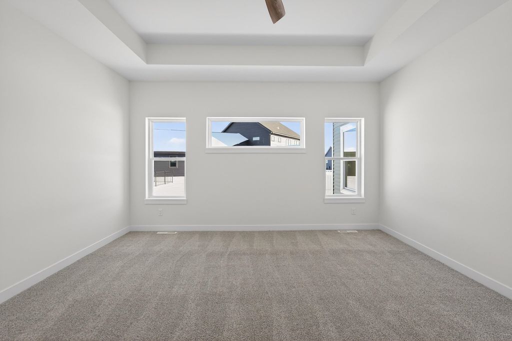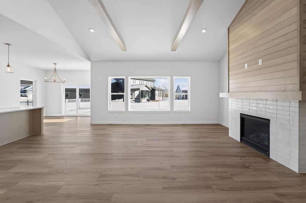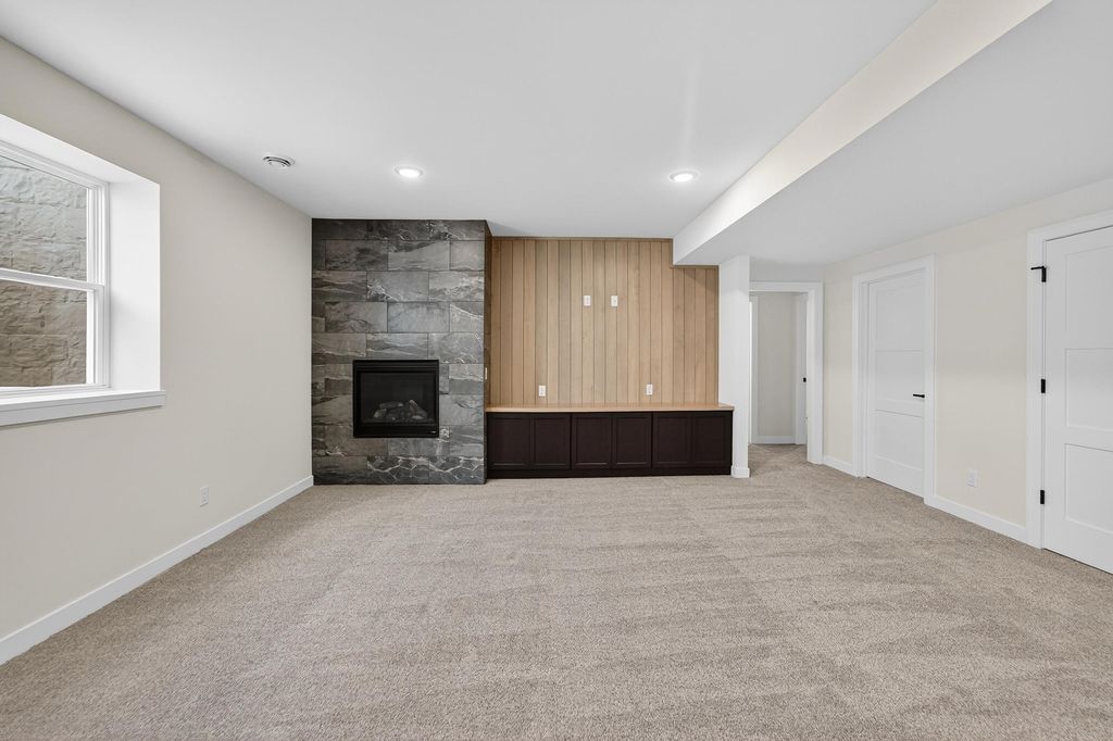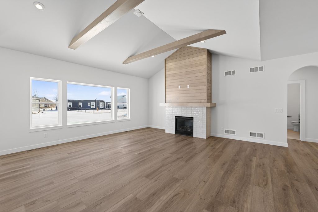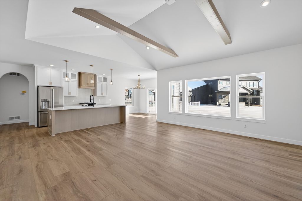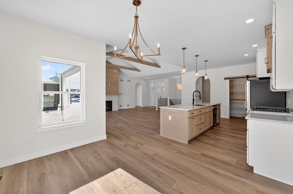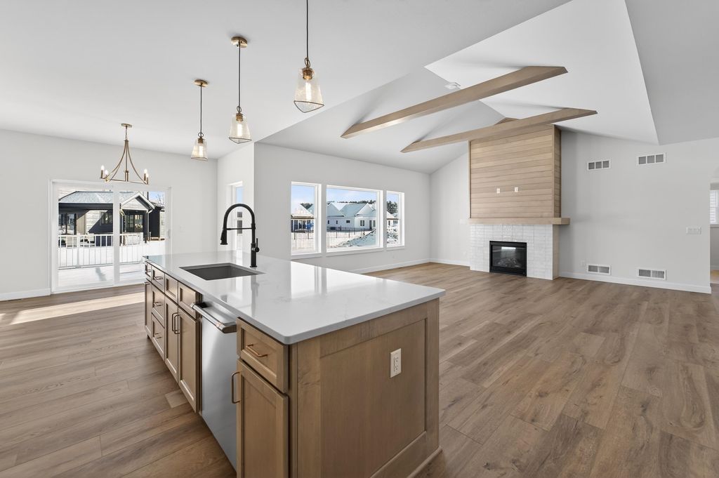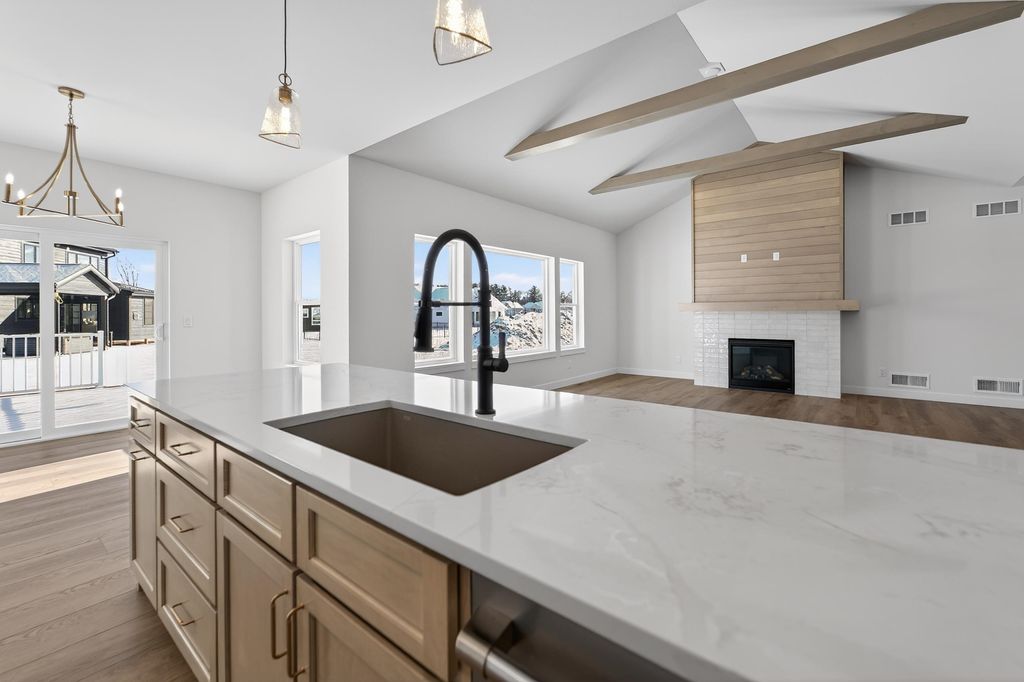 Ambiance Homes presents their newest 4 bedroom/3 full bath ranch home in Conservancy Place's Rivers Turn! You'll love the open concept floor plan, high-end, contemporary finishes & ample natural light. Spacious living area w/gas fireplace, coffered ceiling & perfectly designed kitchen featuring large island, walk in pantry, open dining area & walk-out to deck. Owner's Suite boasts walk-in closet & ensuite w/ tile shower. Conveniently placed main level laundry room. Window exposed and FINISHED LL is complete w/ bed and full bath along w/ a large rec room w/ wet bar, gas fireplace! 3-car garage! Close proximity to Conservancy, parks, walk/bike path and more!