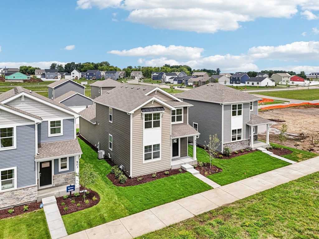 New Under Construction Single Family Home at D.R. Horton's New Kettle Park West Community-Spring 2026 completion. The 2 story Pine Plan features an open concept main level with 9' ceilings, LVP flooring, powder room, and separate laundry and mud rooms. Spacious kitchen boasts a large island, pantry, stainless steel appliances, quartz countertops, 42" cabinets with crown molding and soft close functionality. 2nd level has a large primary bedroom with ensuite bath, dual sinks, shower with glass enclosure & walk-in closet. A loft, 2 more bedrooms, another full bath and large linen closet round out the 2nd floor. Home also includes a partial basement, 2 car garage, and fully sodded corner homesite. Enjoy low maintenance living with lawn/landscape care and alley/driveway snow removal. All D.R.