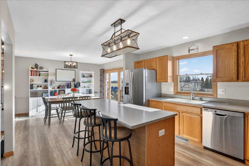 Just move in and enjoy! Meticulously maintained home on the southern edge of Janesville has has had the updating done for you! Newer Roof, siding, windows, A/C and More! 4 levels of finished space. Main floor offers spacious living w/ open kitchen & dining areas complete w/ appliances, pantry, main floor laundry, a convenient 1/2 bath & a nook area for hanging coats & backpacks at the end of the day. 2 Car garage is extra deep on one side offering space for tools & storage. The upper level boasts 3 bedrooms & 2 full baths a huge primary suite w/ walking closet . Relax in the lower level family room by the gas fireplace. 2 other bedrooms (one currently as office) & a full bath here bring the total to 5 bedrooms & 3 1/2 baths. Wow! One more level offers an office, play area and plenty of sto
