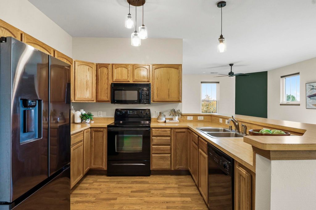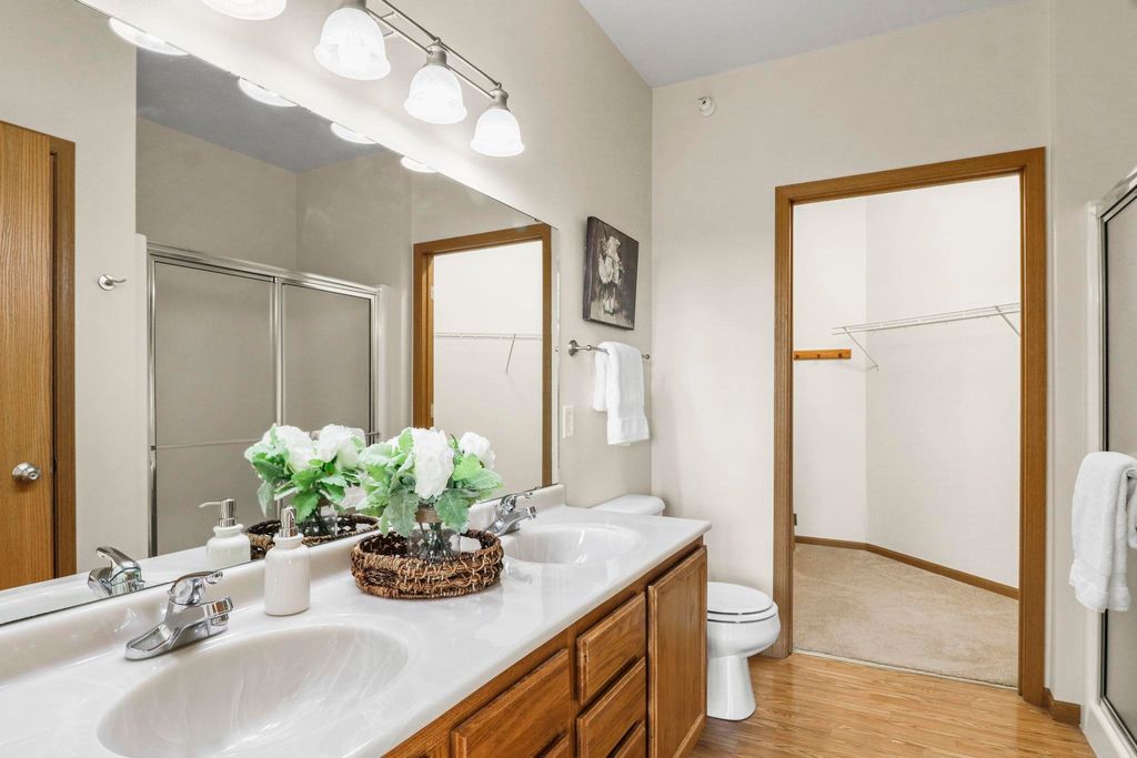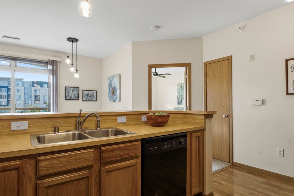 This 2nd-floor corner unit at Town Center Condos is ideal for anyone w/ an eastside commute. Filled w/ sunshine, you'll love the open floor & large windows in this home. The living room alcoves to create a cozy space to unwind. Hosting or chatting while you cook a meal is easy, too, w/ the kitchen opening up to the dining area + extra barstool seating space. Two bedrooms flank the space, including a true primary suite with generous walk-in closet & an attached en suite bath. Extra luxuries like in-unit laundry and a private balcony w/ glass sliding doors add ease & comfort to everyday. The unit includes an underground parking space, storage space, & access to the clubhouse (pictured) & fitness room. BRAND NEW roof, and newer windows & mechanicals, too!