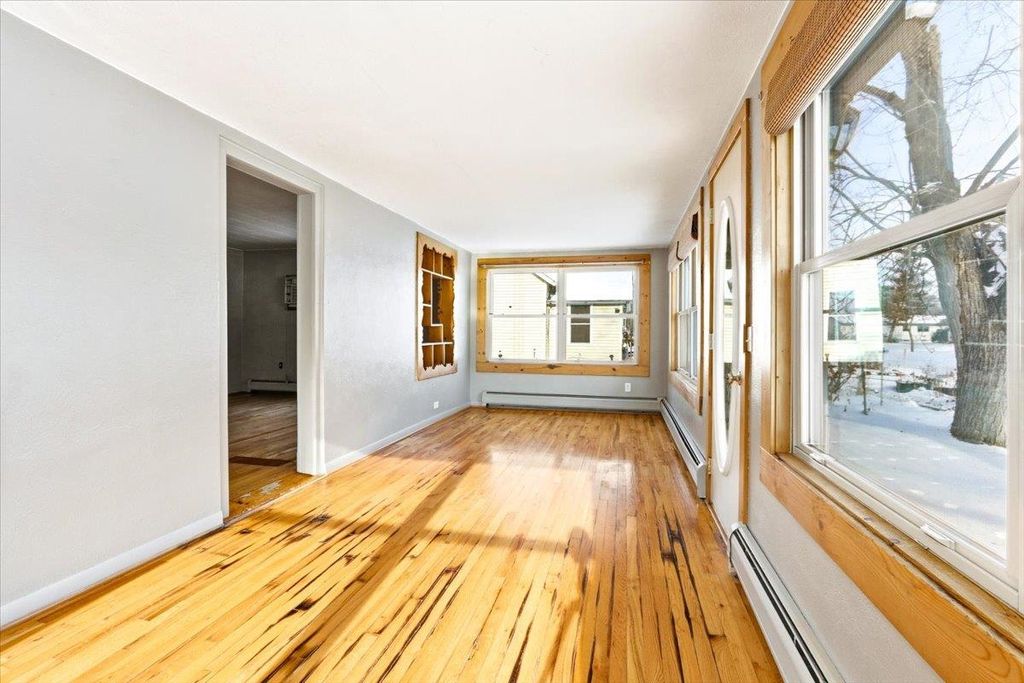 Great Opportunity! Charming and cozy two bedroom, 1 bath, open concept living/dining area leading to a spacious four season room all with hardwood floors. Newer updates include; boiler(11/2025), newer roof. Partial basement is a plus. 24x32 oversized 2 car detached garage with a patio and a storage shed. This ranch home sits on a spacious city lot. Low maintenance exterior. Don't miss out-call today!