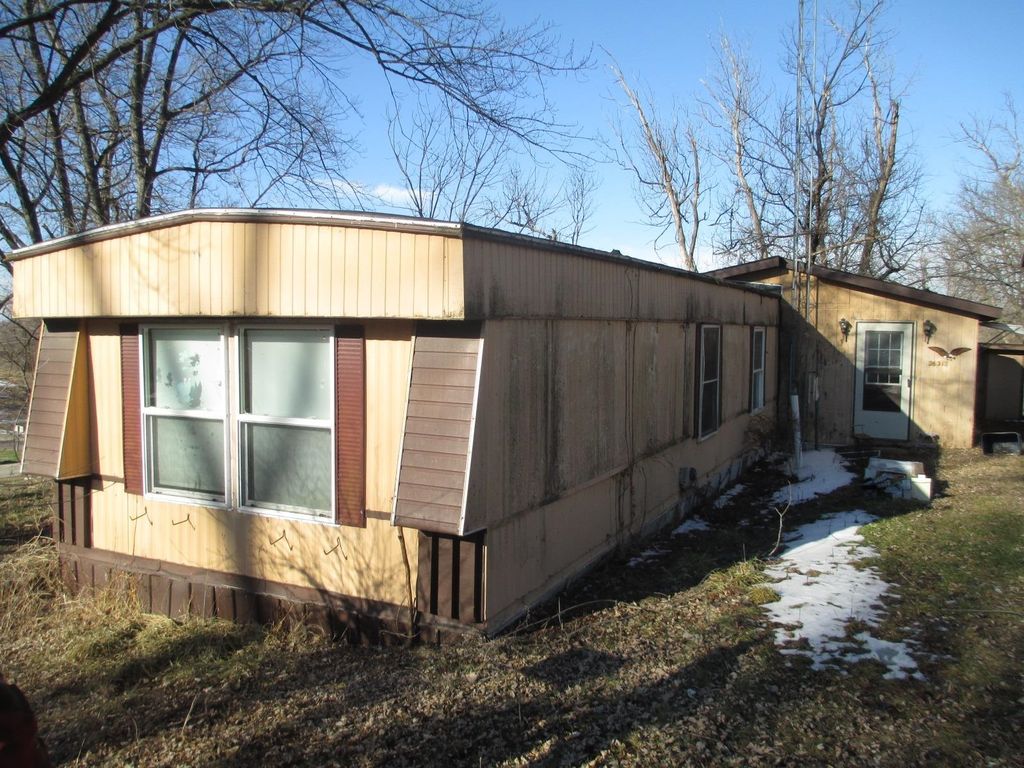 Located in the Town of New Diggings is this older 2 bedroom single wide with an addition, looking for some TLC. A newer 2 car detached garage is also included on the two lots.
