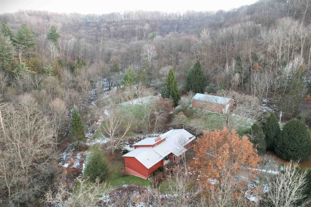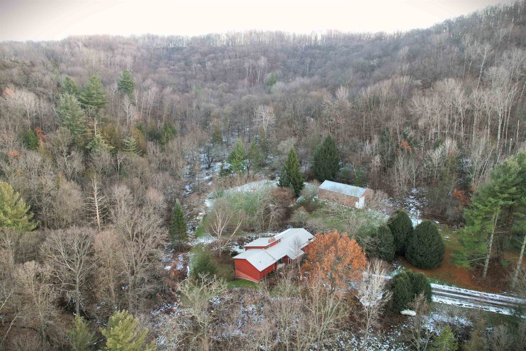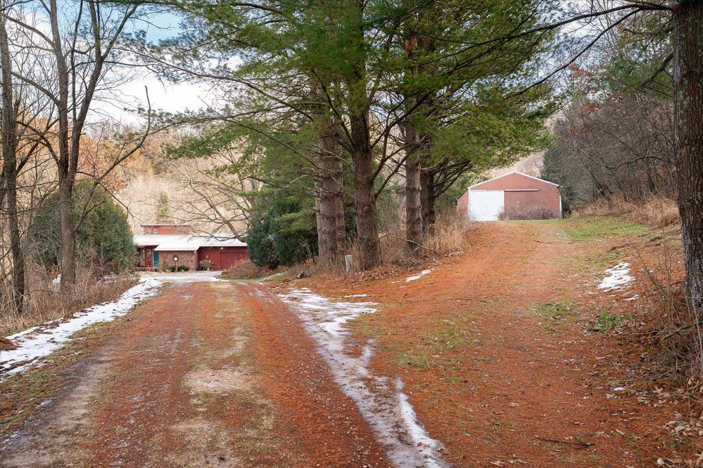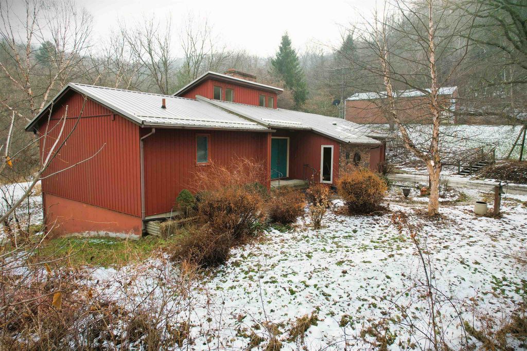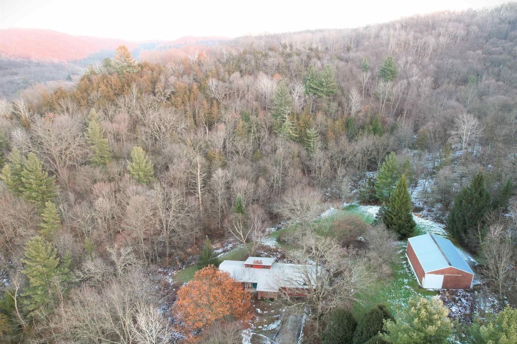 Brookside Paradise! Nicely situated on 27 private acres at the end of a quiet lane, this 3-bedroom, 3-bath home offers nearly 2,300 sq ft of living space filled with natural light from many large windows throughout. Two fireplaces add warmth and character, while the layout provides a solid foundation with opportunity to add your own updates and personal touches over time. Knapp Creek meanders through the property, highlighted by a beautiful stretch lined with mature willow trees. The land features a diverse mix of woods, open meadow, small ponds, and established trails winding to the creek - perfect for walking, wildlife viewing, or quiet reflection. A pole building provides excellent storage or workspace. Enjoy unmatched privacy, seclusion, and peacefulness with abundant wildlife includin