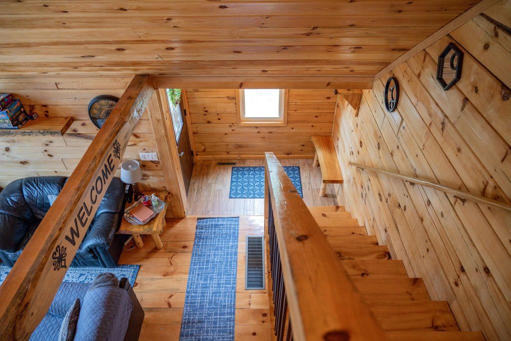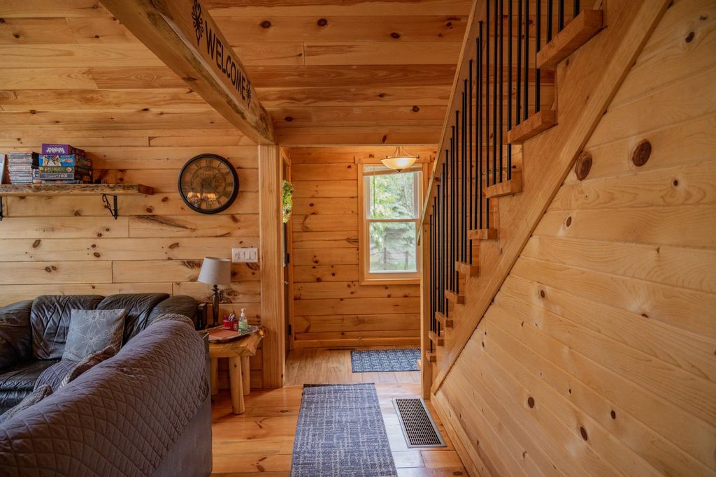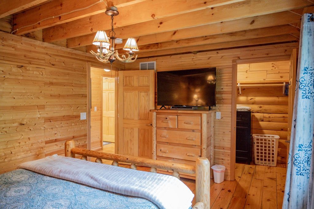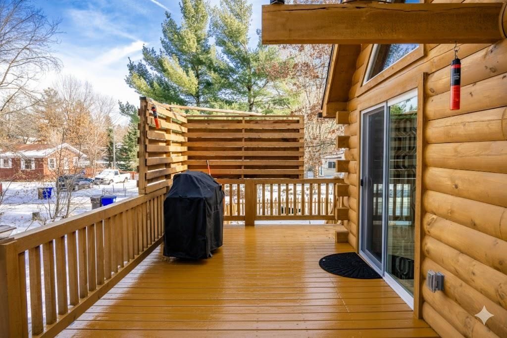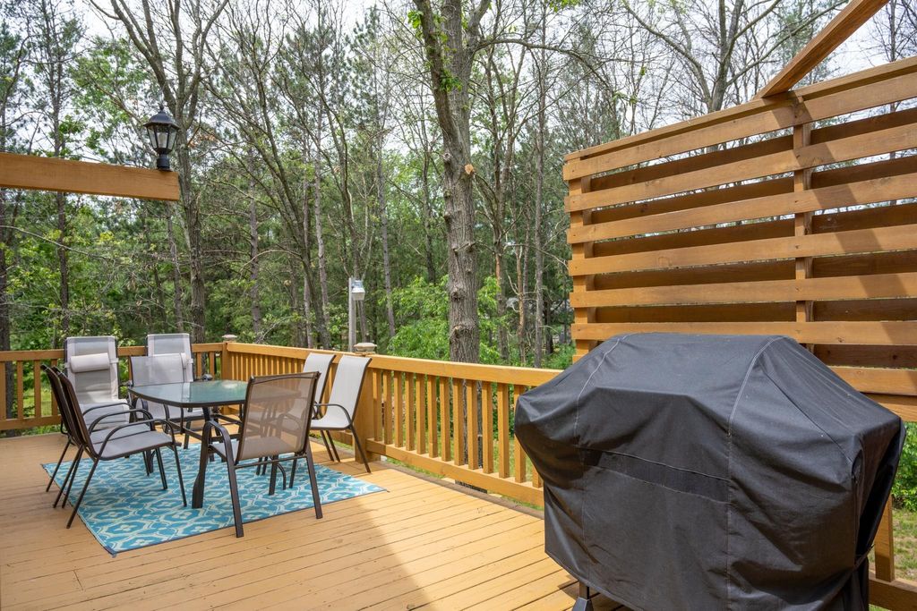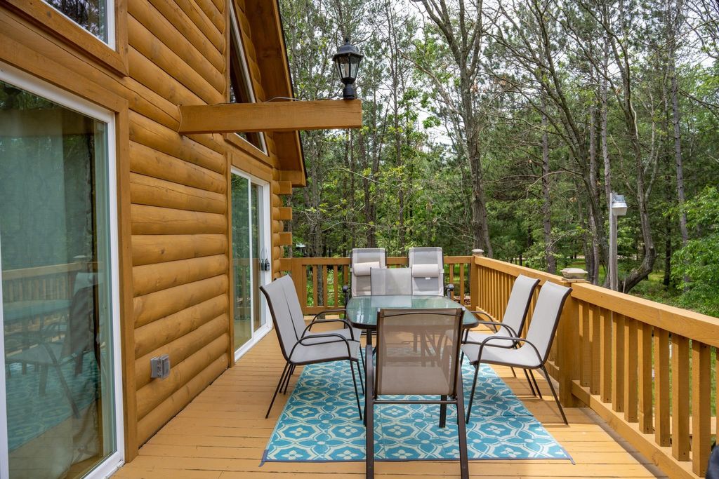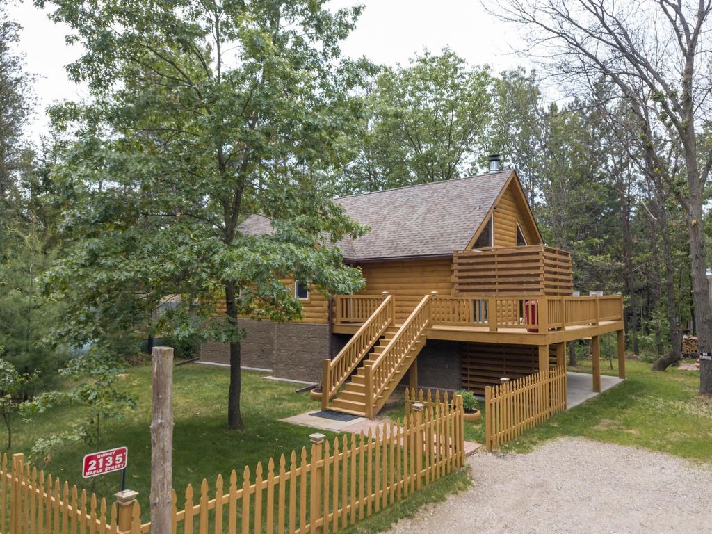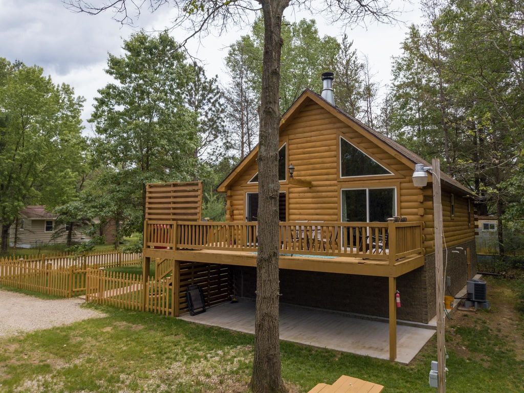 Super clean & neat log (D-log style) cabin within walking distance to Castle Rock Lake. Main level features living room, kitchen, dining area, 2 bedrooms w/ plenty of storage space, foyer, stackable washer & dryer in the closet, wood burning fireplace & walkout to the wrap around deck with privacy feature. Upper floor has 3rd bedroom & loft area. The ground level has 5' crawl space (outside entry only) for all the utilities & ample storage room. Covered concrete patio could be perfect for your dream hot tub. Nicely wooded backyard w/ firepit & garden shed to keep all your garden essentials. This could be your cabin you have been looking for in the Castle Rock Lake area or an investment. This property is in short term rental & could bring income to help with up keep of owning the property.