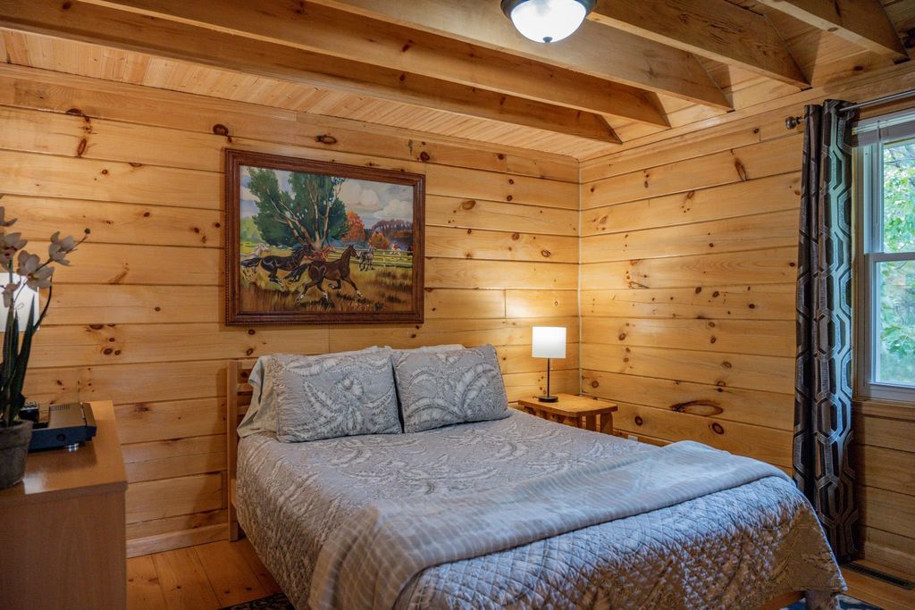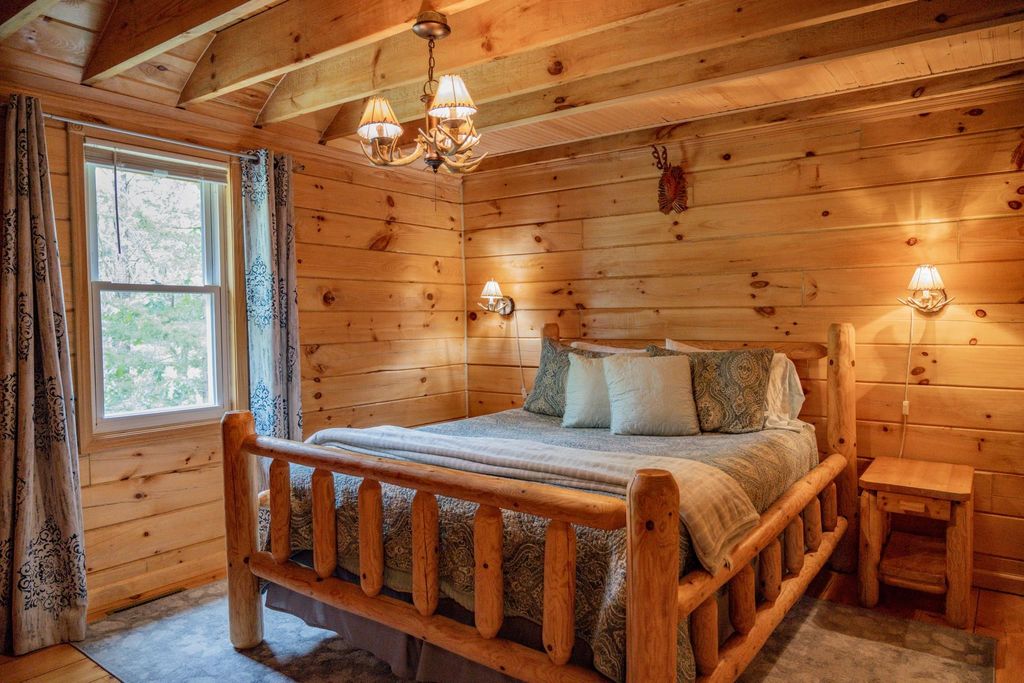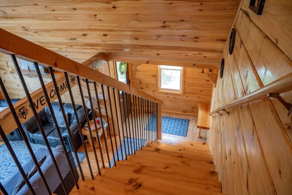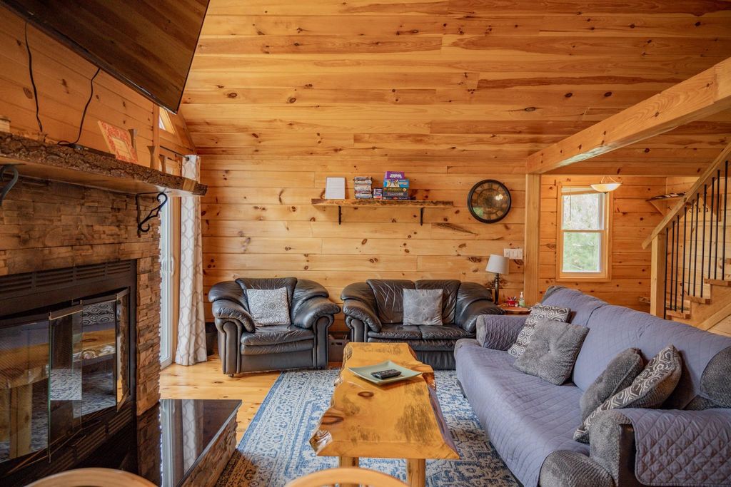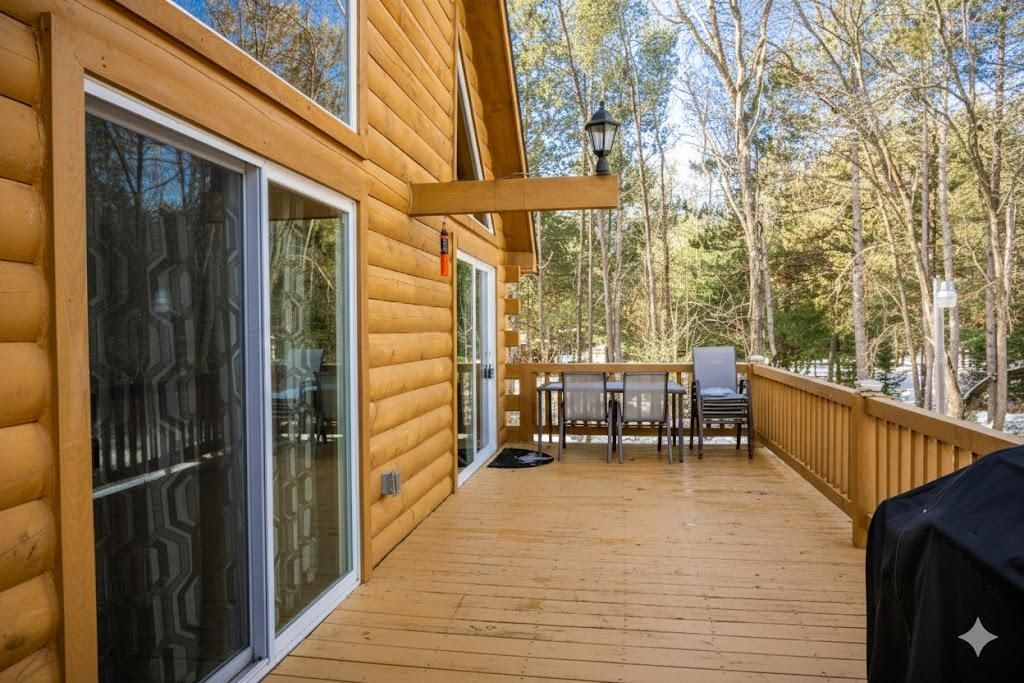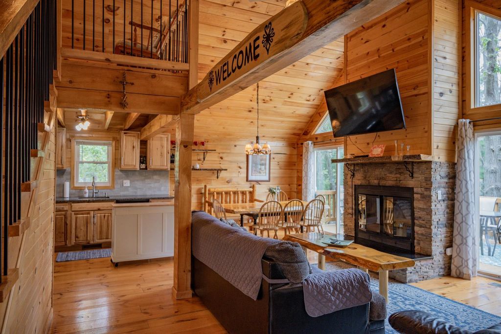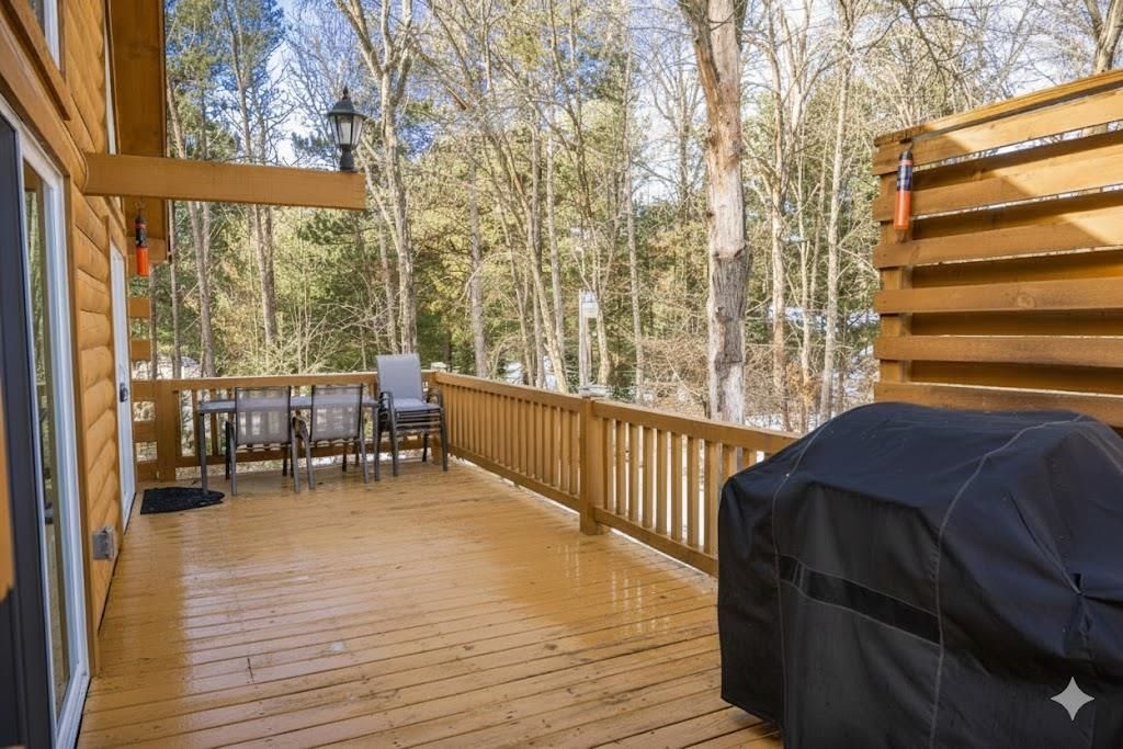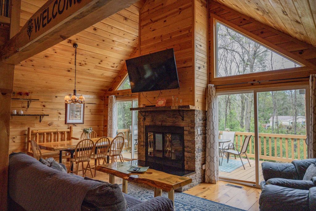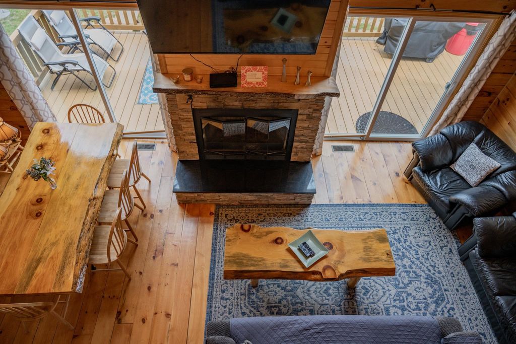 Super clean & neat log (D-log style) cabin within walking distance to Castle Rock Lake. Main level features living room, kitchen, dining area, 2 bedrooms w/ plenty of storage space, foyer, stackable washer & dryer in the closet, wood burning fireplace & walkout to the wrap around deck with privacy feature. Upper floor has 3rd bedroom & loft area. The ground level has 5' crawl space (outside entry only) for all the utilities & ample storage room. Covered concrete patio could be perfect for your dream hot tub. Nicely wooded backyard w/ firepit & garden shed to keep all your garden essentials. This could be your cabin you have been looking for in the Castle Rock Lake area or an investment. This property is in short term rental & could bring income to help with up keep of owning the property.