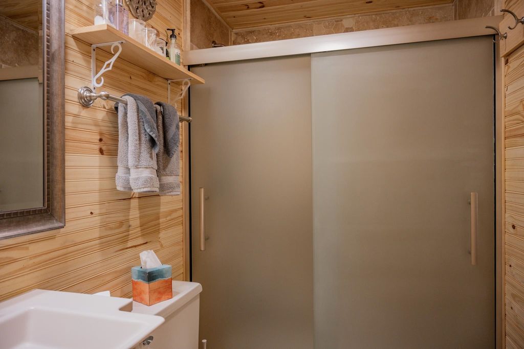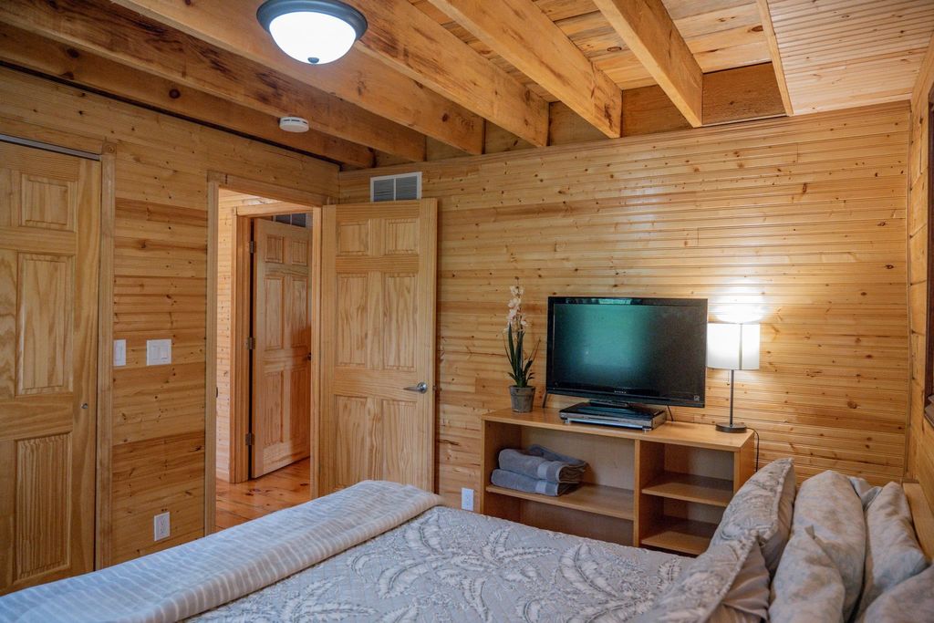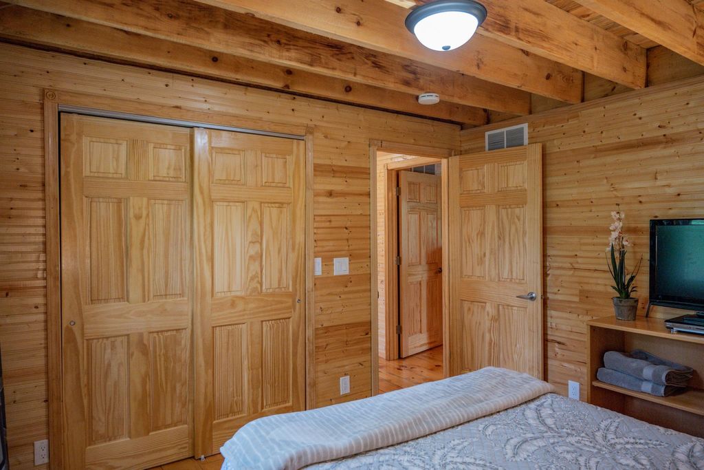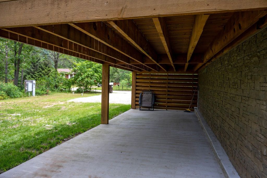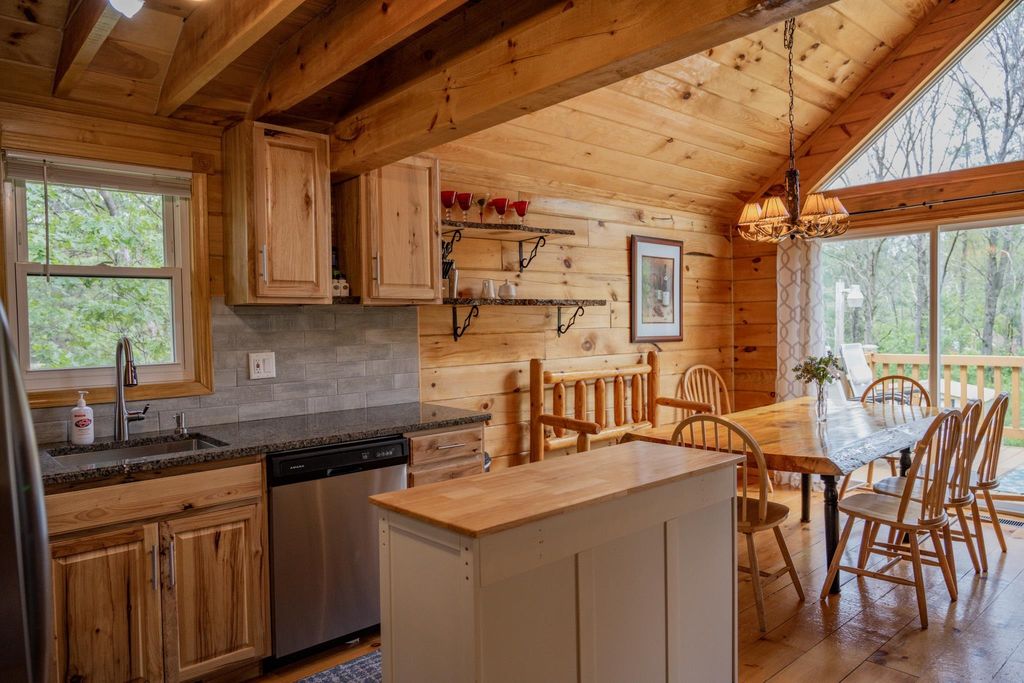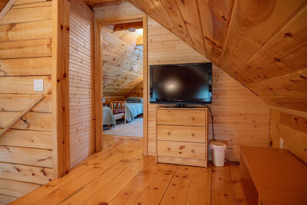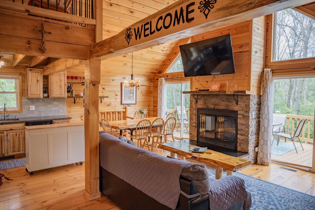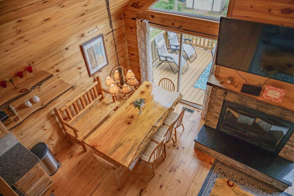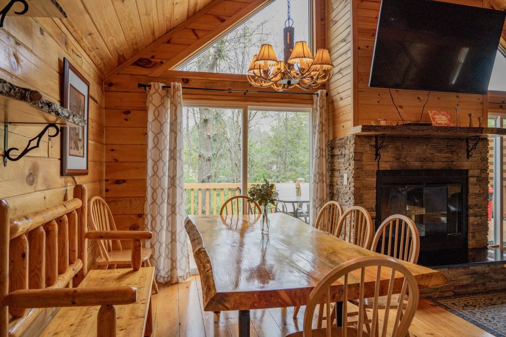 Super clean & neat log (D-log style) cabin within walking distance to Castle Rock Lake. Main level features living room, kitchen, dining area, 2 bedrooms w/ plenty of storage space, foyer, stackable washer & dryer in the closet, wood burning fireplace & walkout to the wrap around deck with privacy feature. Upper floor has 3rd bedroom & loft area. The ground level has 5' crawl space (outside entry only) for all the utilities & ample storage room. Covered concrete patio could be perfect for your dream hot tub. Nicely wooded backyard w/ firepit & garden shed to keep all your garden essentials. This could be your cabin you have been looking for in the Castle Rock Lake area or an investment. This property is in short term rental & could bring income to help with up keep of owning the property.