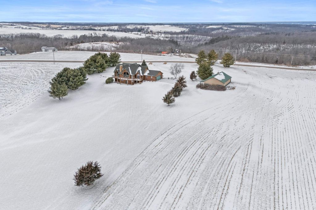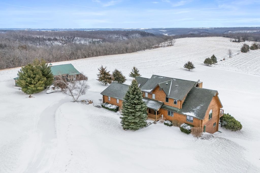 Set high above the rolling landscape of Wisconsin's Driftless Region, this exceptional two-story long home on 43 acres blends timeless craftmanship with awe-inspiring natural beauty. Vaulted ceilings, exposed interior timbers and walls of windows fill the open-concept living spaces with natural light while capturing sweeping, panoramic views in every season. Expansive decks extend the living experience outdoors - perfect for quiet mornings, sunset gatherings, and effortless entertaining in complete privacy. Spend your days hiking Governor Dodge State Park, paddling the Wisconsin River, golfing the Springs Golf Course, or enjoying American Players Theater and the iconic House on the Rock. Private yet connected, this is more than a home - it's a destination and a lifestyle. Includes p