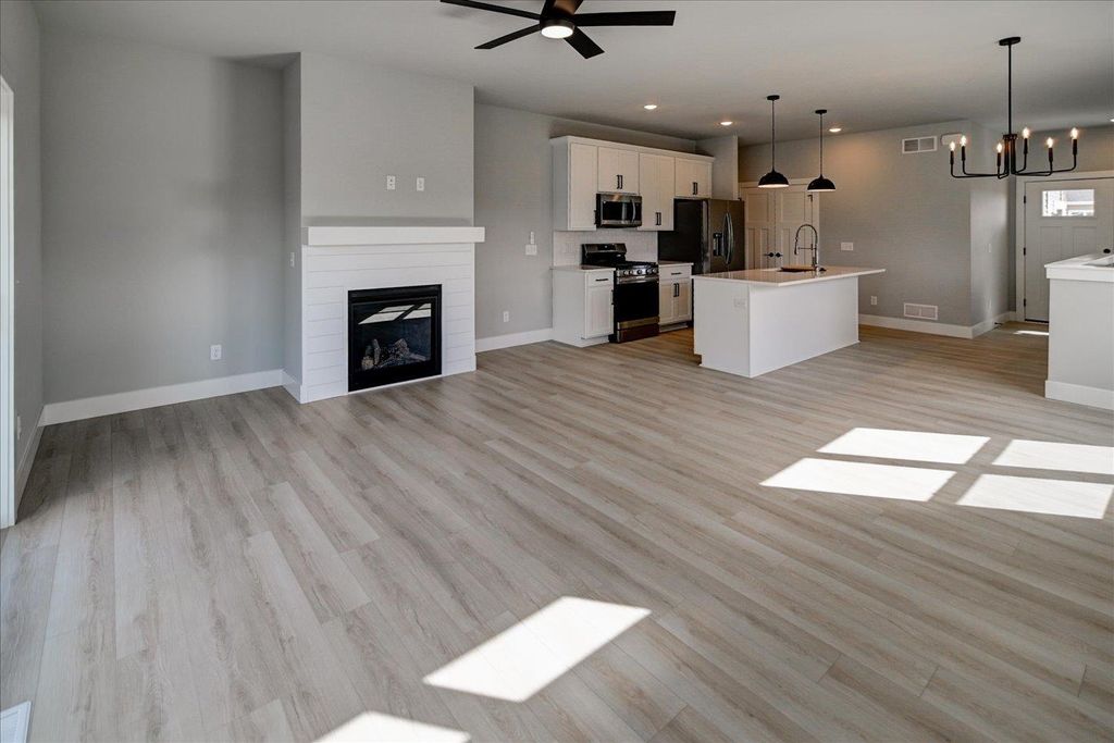Just Completed! Rare find new construction zero lot line Ranch Home in Stoughton. Located at the north edge of beautiful Stoughton WI and 12 minutes from Madison. This Alterra Design Ranch Home features open floor plan, open kitchen, living room features big windows with great sunlight, large Quartz kitchen island, SS appliances, pantry, mudroom. Main level primary bedroom, 2nd bedroom. this home is finished in lower level with family room and 3rd Bedroom, additional bathroom. 2 Car garage. Private patio with park view. Minutes from Walmart Supercenter, Restaurants, Coffee shops!