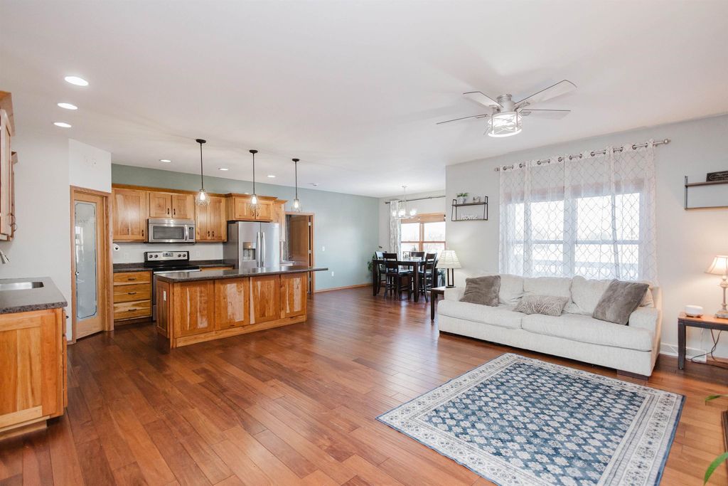 Looking for a well-designed ranch home in a desirable neighborhood close to the schools? Look no further. This thoughtfully designed 5-bedroom, 3-bath ranch offers comfort, functionality, and space for today's lifestyle. The main level features a spacious primary suite with direct access to a large laundry room, a beautiful kitchen with a generous island, and an open dining and living area perfect for everyday living and entertaining. Two additional bedrooms complete the main level. The lower level offers a welcoming family room, two more bedrooms ideal for guests or home offices, and exceptional storage throughout. Enjoy peaceful views overlooking a quiet prairie in a pristine setting. Schedule your showing today and see all this home has to offer.