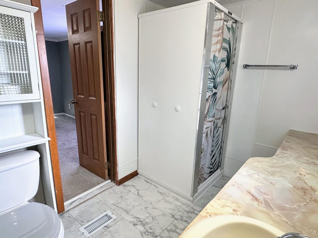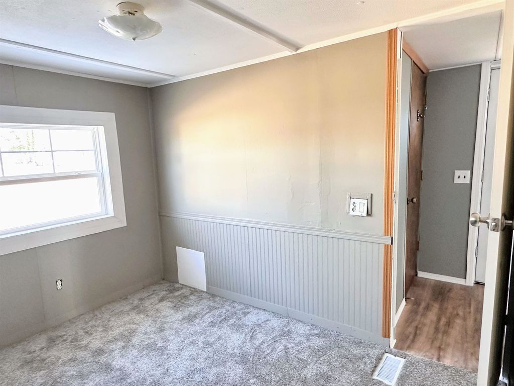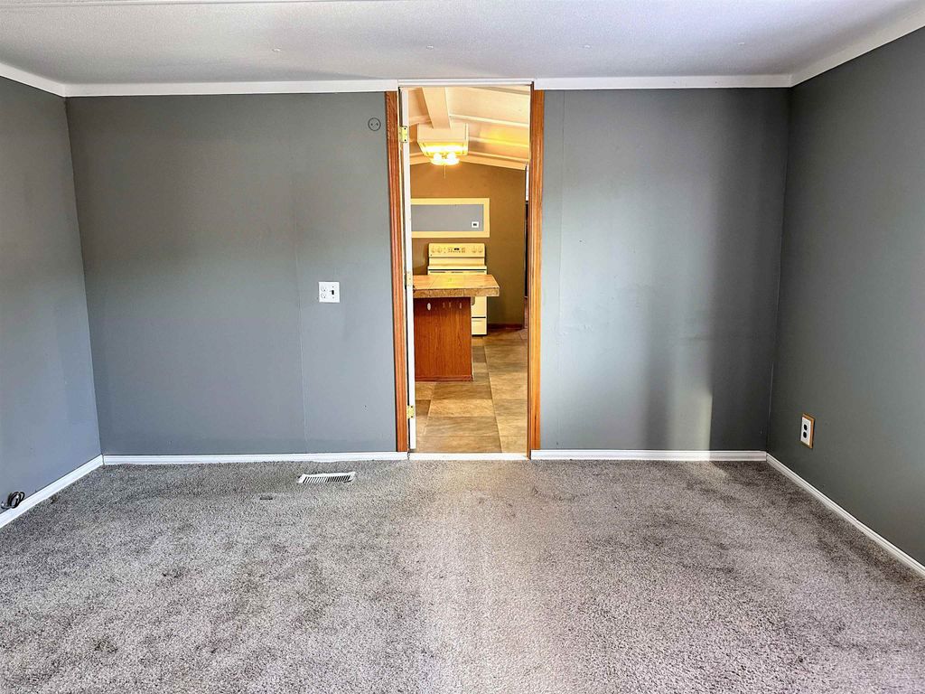 Move in ready single wide mobile home on leased land. You don't have to do a thing except move in! This home offers a fresh start with neutral paint, trim, and new blinds. Big-ticket updates already done: insulation, furnace & central air in 2020, new water heater & outdoor shed in 2023, plus bathroom refresh & new window in 2025. Large living room with open concept to the kitchen/dining area. Practical kitchen island adds lots of work space for baking and entertaining with laundry close by for every day convenience. Master bedroom with 2nd bedroom and bath on the other end of the home for privacy. Efficient, affordable, and great for year-round living or weekend escapes! Kitchen appliances included along with the washer and dryer. Current lot rent is $296 per month. Buyer must be approved