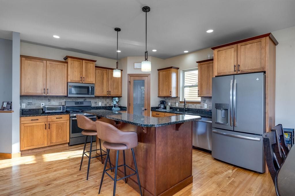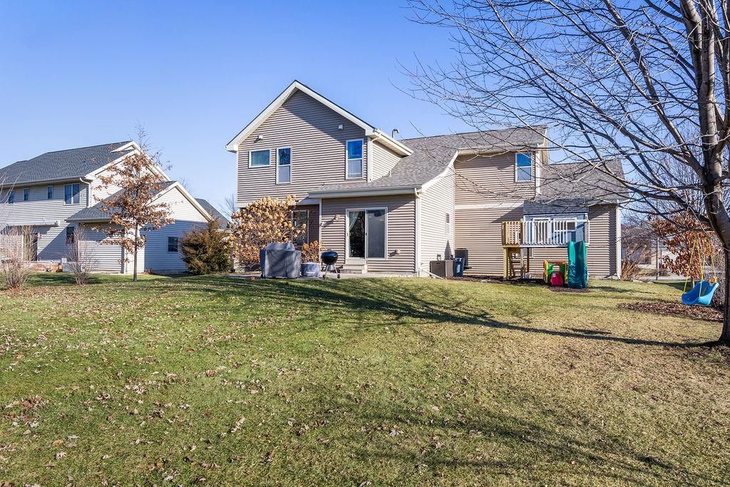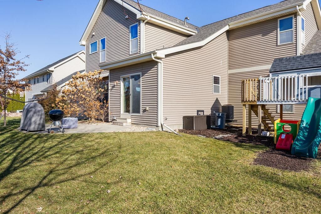 Located in the desirable Oregon Parks Subdivision, this well-designed 2-story home offers an open floor plan ideal for both everyday living and entertaining. The kitchen features a breakfast bar, granite countertops, and soft-close cabinetry, flowing seamlessly into the main living area with a cozy fireplace. A versatile flex room with French Doors provides the perfect space for a home office, playroom, or formal dining. Upstairs are four generously sized bedrooms, including a spacious primary suite with a tray ceiling, large walk-in closet, walk-in shower, and relaxing soaking tub. The insulated and finished 3-car garage includes 8-foot-high doors for added storage and functionality. Outdoor living is easy with a level backyard, patio, and playset, ideal for relaxing or entertaining. Rece
