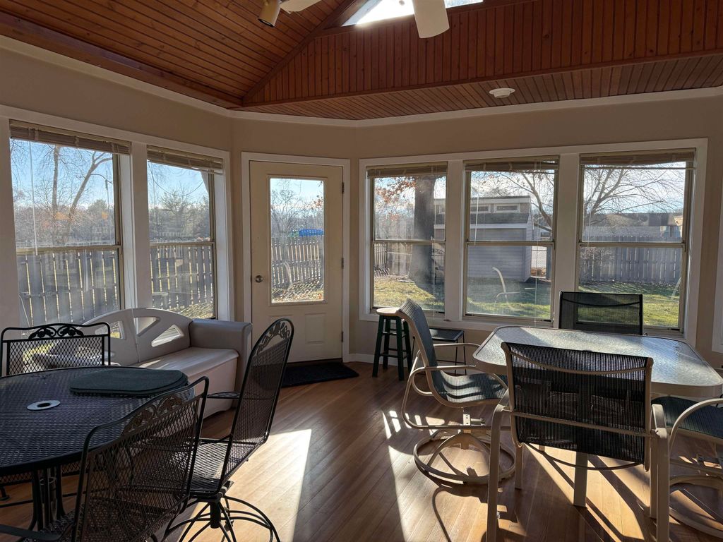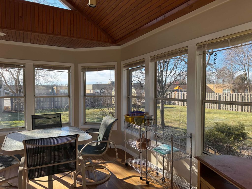 This is a real beauty. 3-bedroom home owned and cared for by the same owner for 40 years. Beautifully maintained and decorated. Open floor plan, neutral colors, newer flooring. All updated windows about 10 years ago. Furnace 2018, water heater 2 years. Main floor living room and kitchen opens to dining and family room with fireplace and then to beautiful 3-season sunroom. Primary bedroom, family room and 3-season sunroom have vaulted ceilings. Light and bright in all rooms! Fenced yard with shed and green house. Lower-level finish with storage room, rec room and additional room that has rough-in for future 2nd bath. Nothing to do here but move in and enjoy. Short walk to Harrison school or the Ice Age Trail. Convenient to commute too! Showings to end 2/2/2026 for personal p