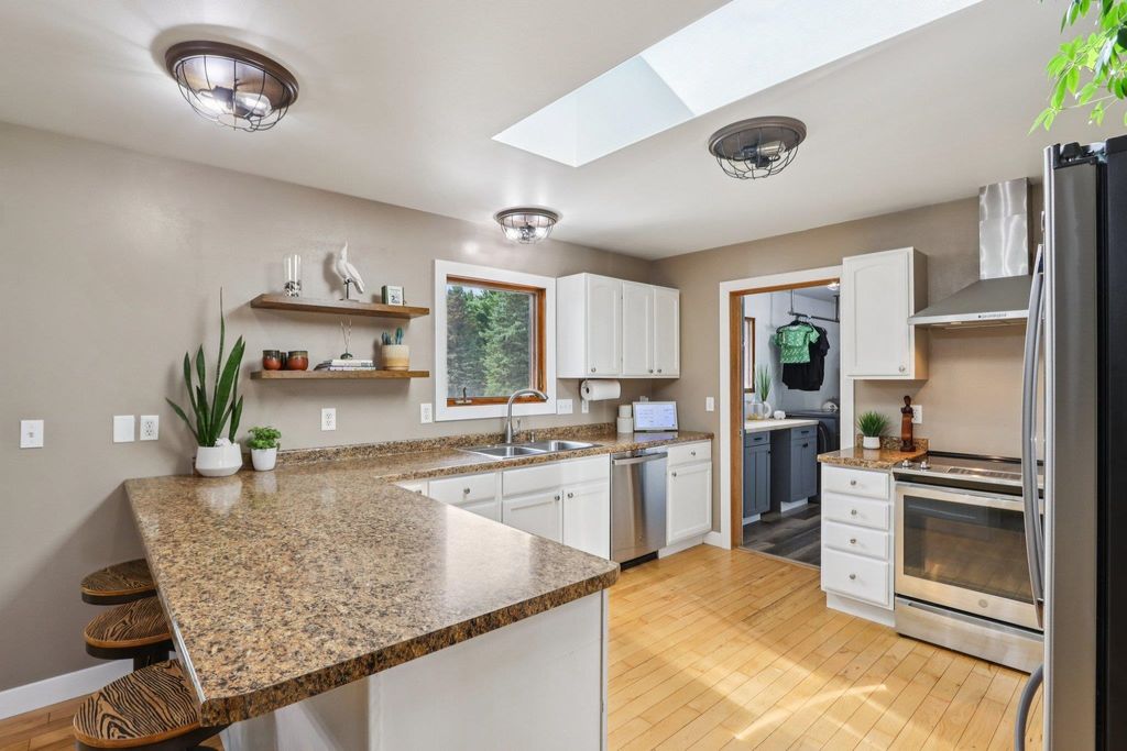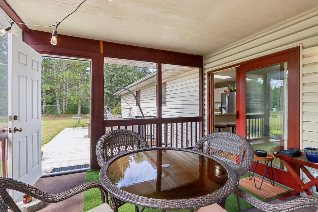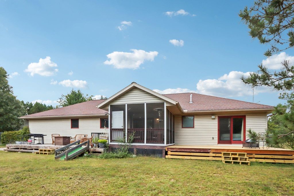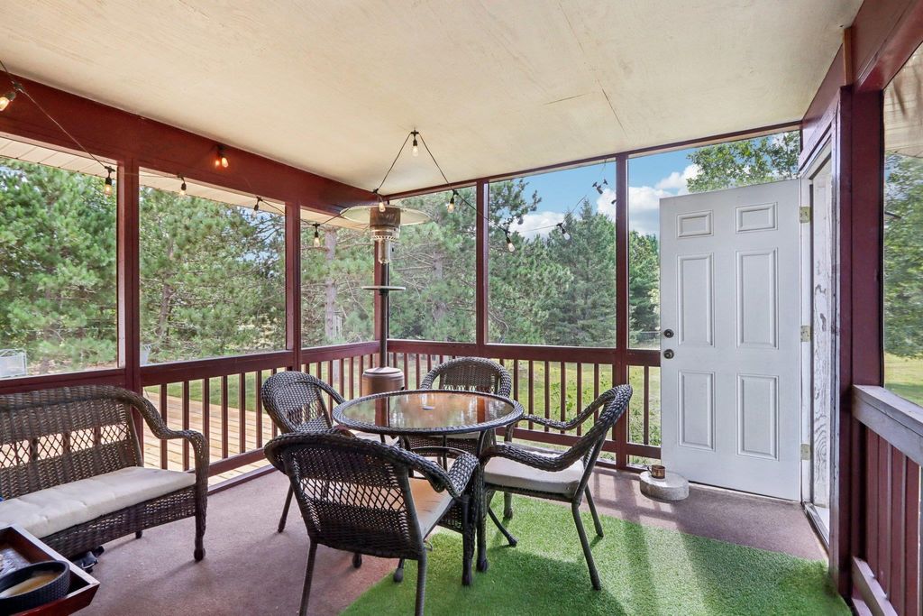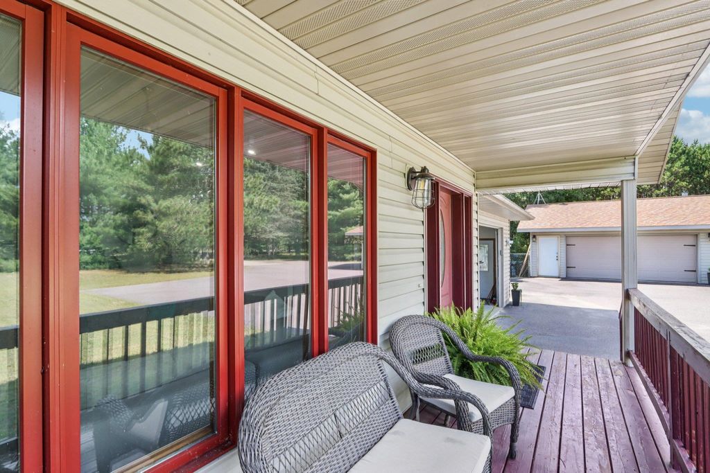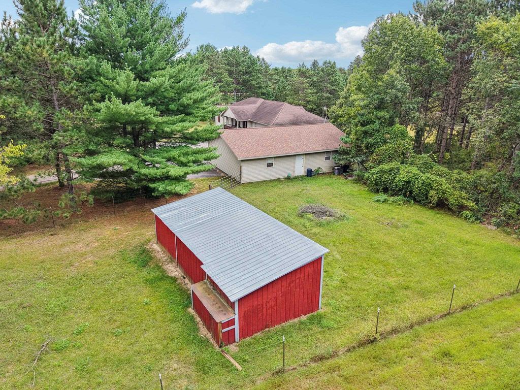 Welcome to this charming 5/3 bedroom, 3-bath ranch home located just minutes outside of Wisconsin Dells. Situated on a semi-wooded lot, this property offers privacy and convenience with easy access to area attractions. The home features newer kitchen appliances and a recently updated furnace. The private primary suite includes a walk-out deck, while the screened-in porch provides an ideal space for morning coffee, evening cocktails, or entertaining, with direct access to a large outdoor deck. Enjoy the wildlife and tails on the property. A spacious 40' x 30' detached 4 car garage offers excellent storage and workspace, making it ideal for hobbyists, recreational equipment, or additional vehicles, with ample parking available. With a fenced in half acre in the back yard and fenced in outbu
