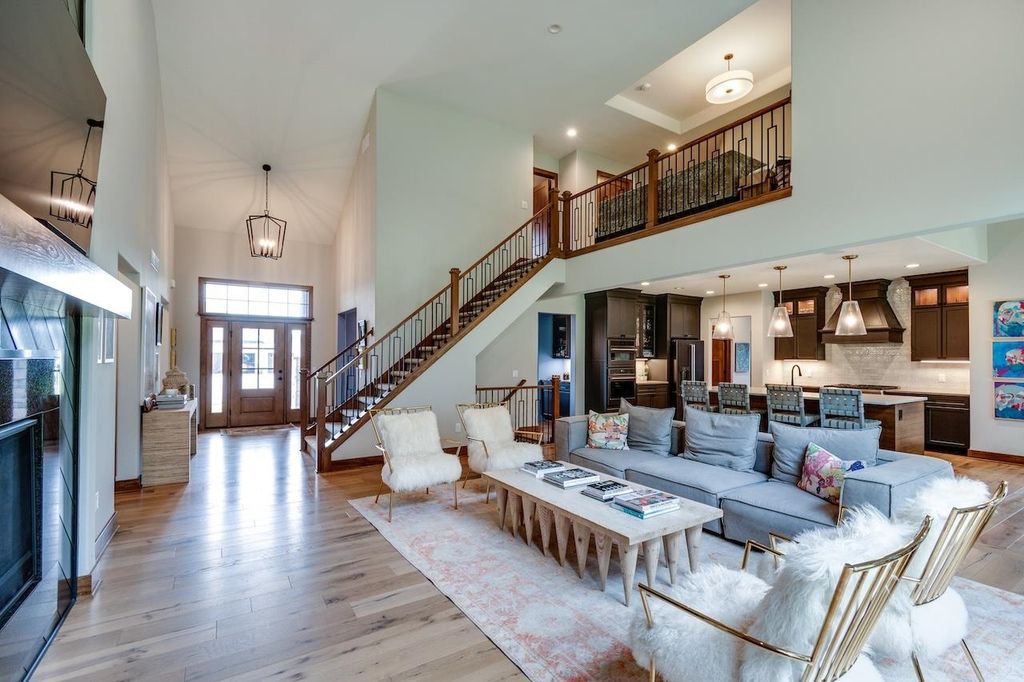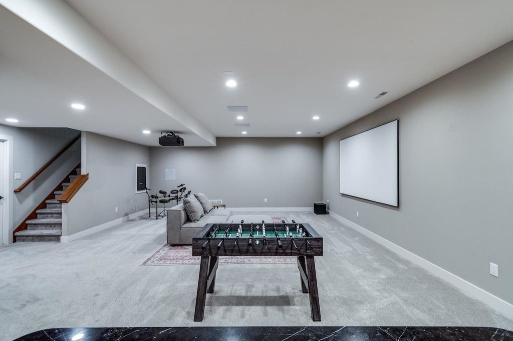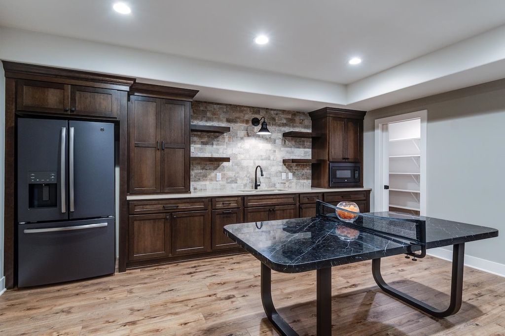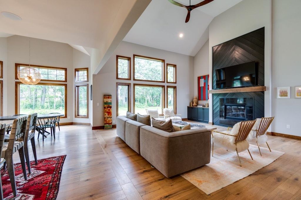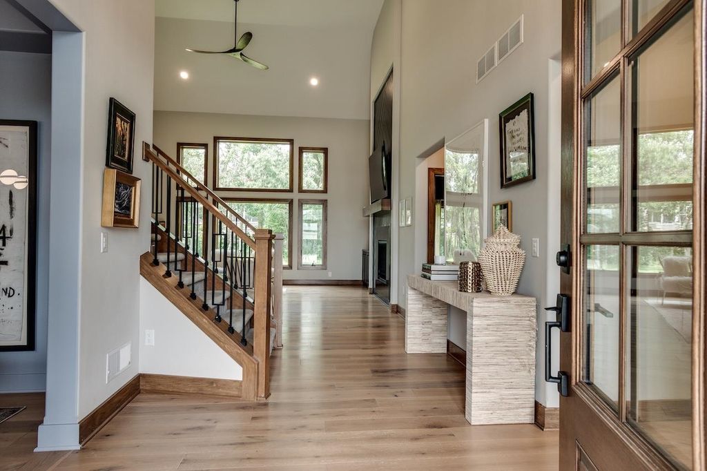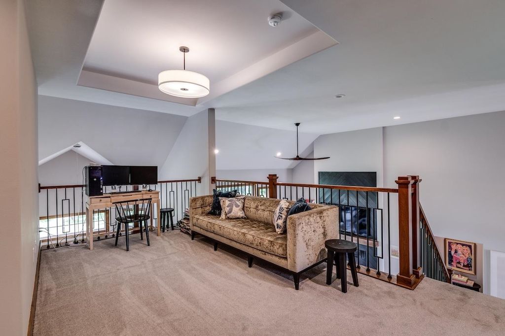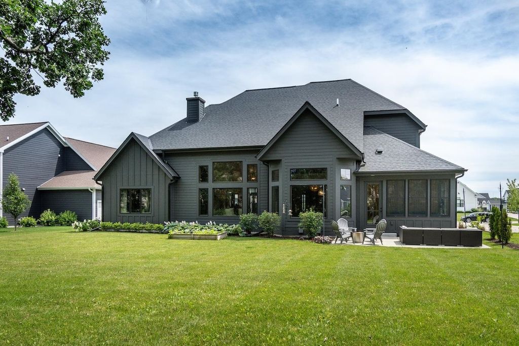 Luxury meets function in this meticulously finished Carriage Ridge home. Soaring foyer leads to a light-filled great room with hardwood floors & eye catching chevron shiplap fireplace. Open-concept gourmet kitchen & eating area overlook a tranquil, wooded private backdrop, while the formal dining room & three-season porch are great for entertaining. ML primary ensuite with a spa-like bath and office. UL offers 3 generous bdrms & 2 full baths. Partially finished LL expands living space with a media room & additional bedrooms with full bath. Bonus features include mudroom, laundry room & a pet grooming station. The backyard has a nice patio space and is an open slate with a large yard, offering ample space for the creation of a pool or outdoor dining & kitchen.