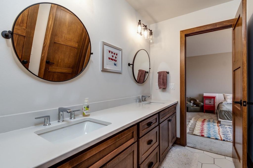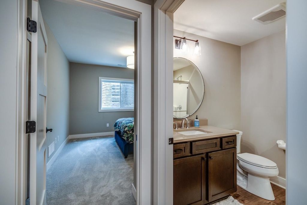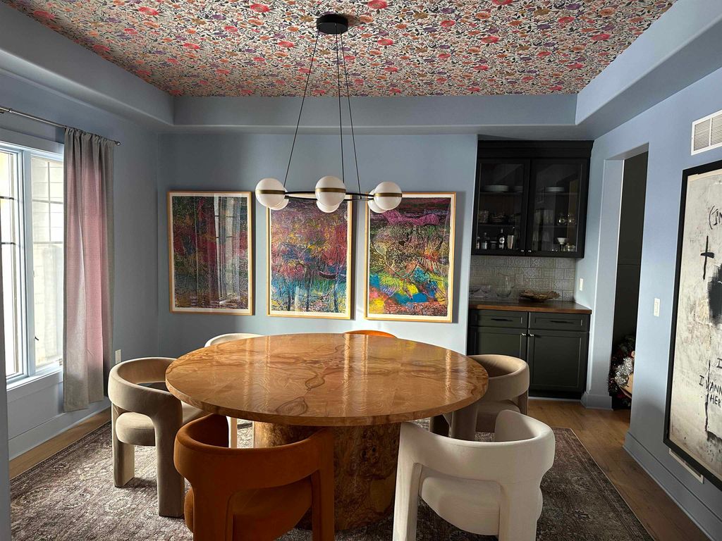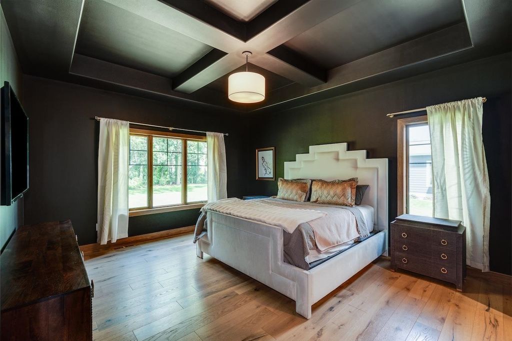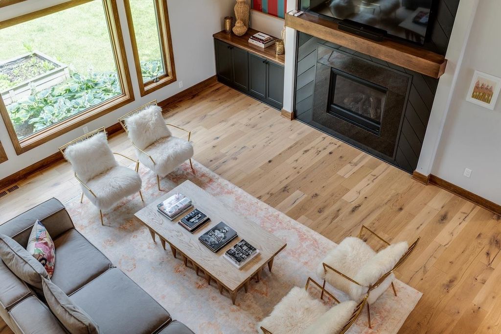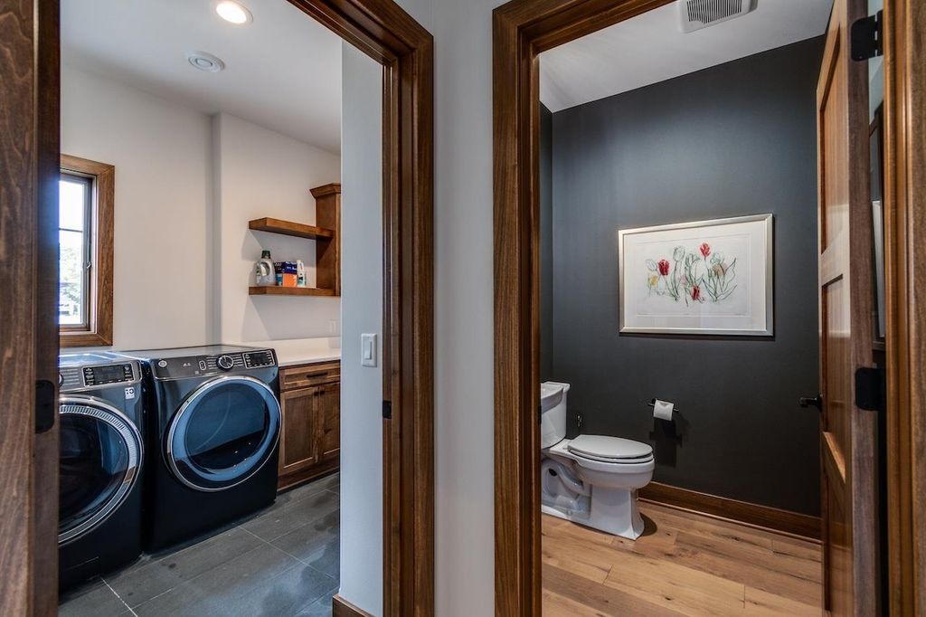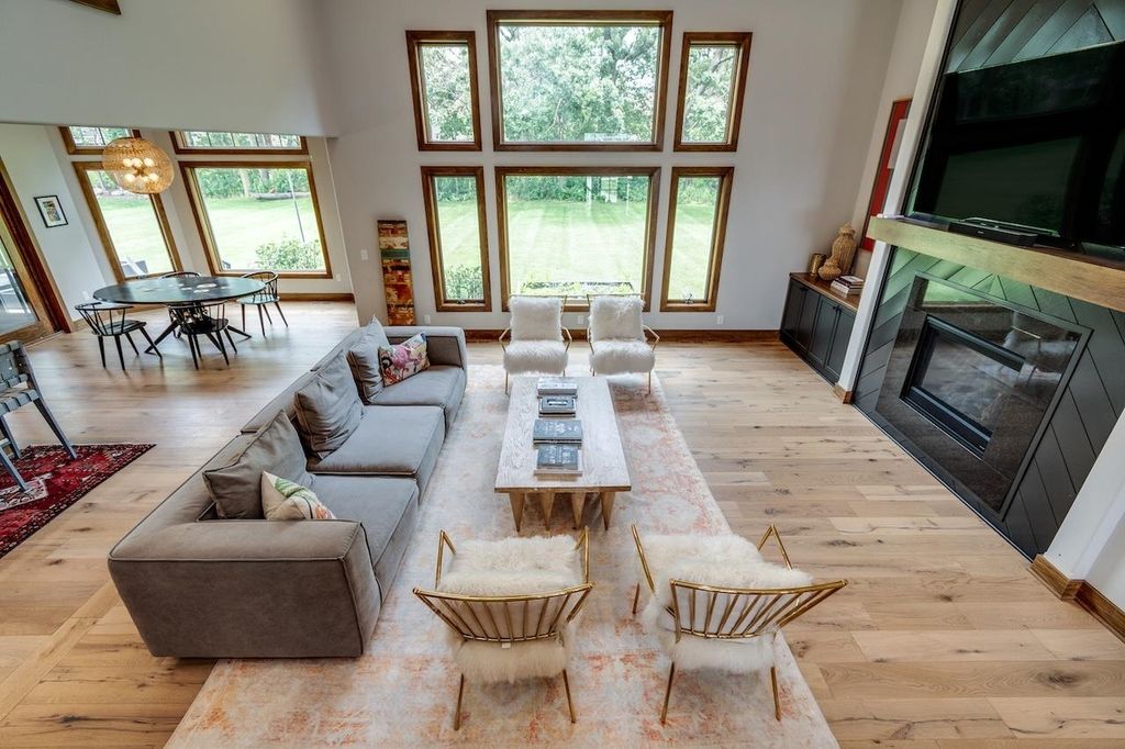 Luxury meets function in this meticulously finished Carriage Ridge home. Soaring foyer leads to a light-filled great room with hardwood floors & eye catching chevron shiplap fireplace. Open-concept gourmet kitchen & eating area overlook a tranquil, wooded private backdrop, while the formal dining room & three-season porch are great for entertaining. ML primary ensuite with a spa-like bath and office. UL offers 3 generous bdrms & 2 full baths. Partially finished LL expands living space with a media room & additional bedrooms with full bath. Bonus features include mudroom, laundry room & a pet grooming station. The backyard has a nice patio space and is an open slate with a large yard, offering ample space for the creation of a pool or outdoor dining & kitchen.
