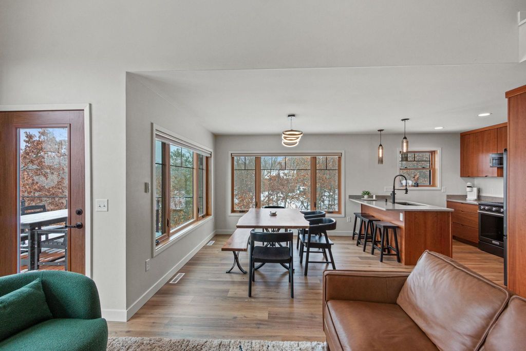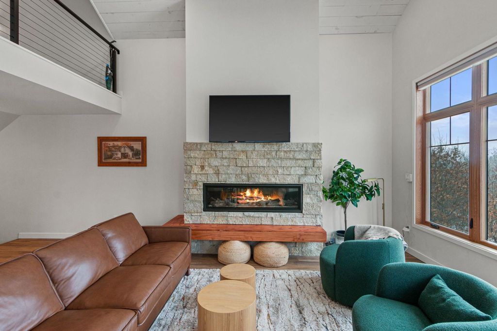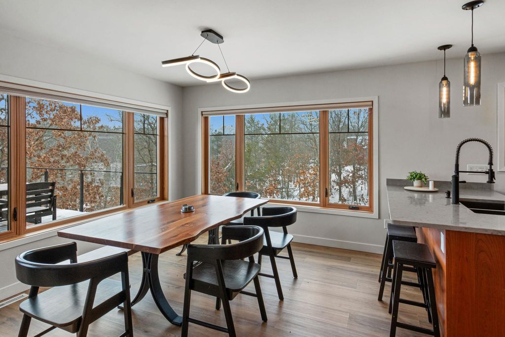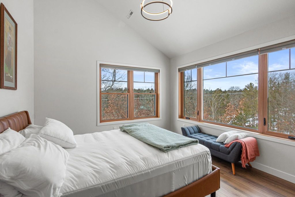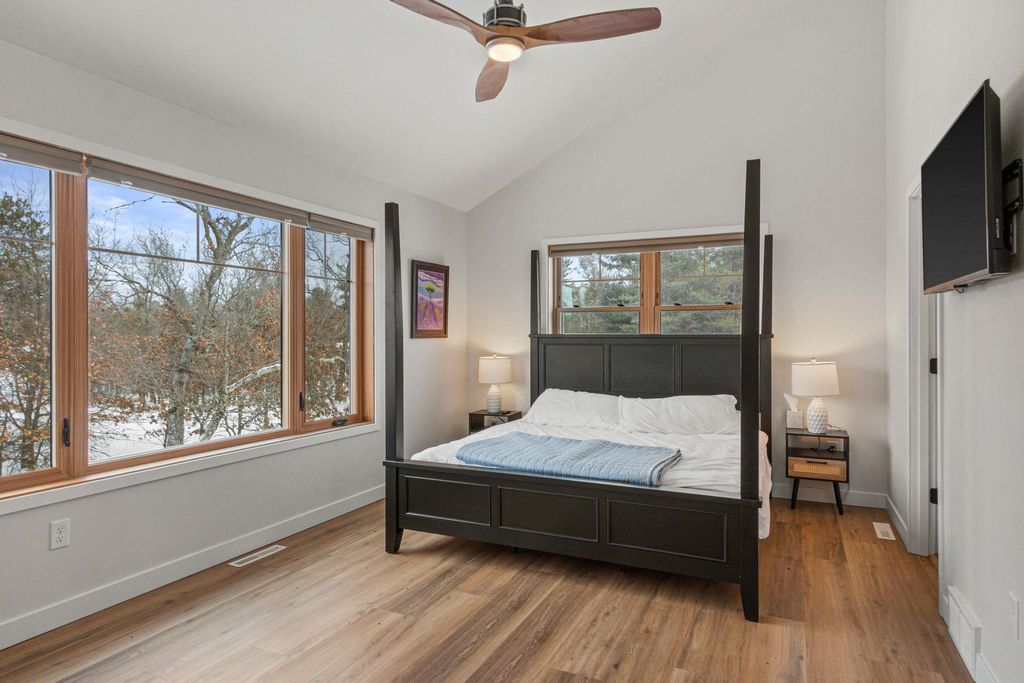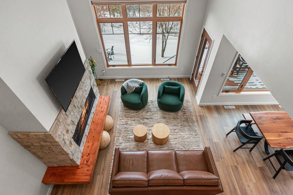 Lake Arrowhead Lake Access Home! This magnificent, nearly new home offers a contemporary design mixed w/ earthy rustic touches. Exceptionally bright, lively, and tastefully done interior with an abundance of uncommonly beautiful windows. Open design w/ towering wooden plank cathedral ceiling, stone/gas widescreen fireplace, transom windows, skylights, LVP flooring (throughout); amazing dining space w/ large windows and panoramic view; Amish kitchen w/ cherry cabinetry, granite tops, pantry & quality appliances; one of 2 bedroom suites w/ tile shower, plus 1/2 bath on main level; 2nd level w/ catwalk overlooking the living area, primary suite w/ tile shower, walk-in closet & double vanity, plus 3rd bedroom; finished LL w/ family room, widescreen electric FP, full bath, access to the patio,
