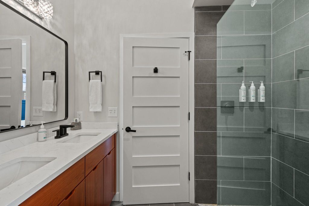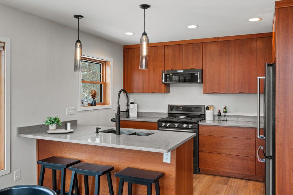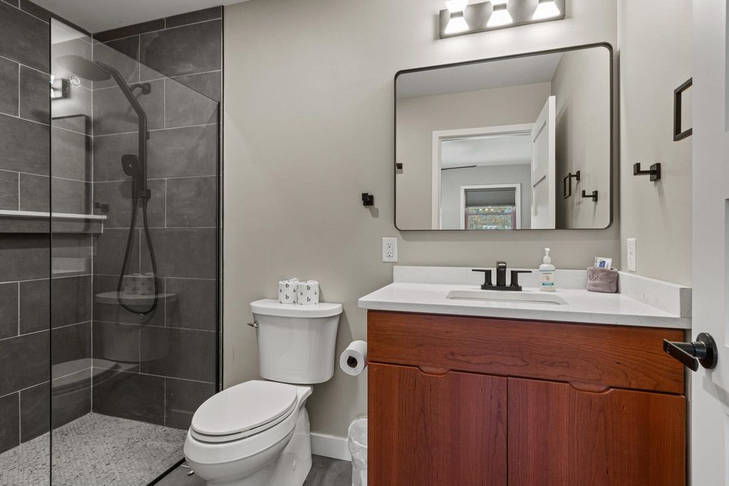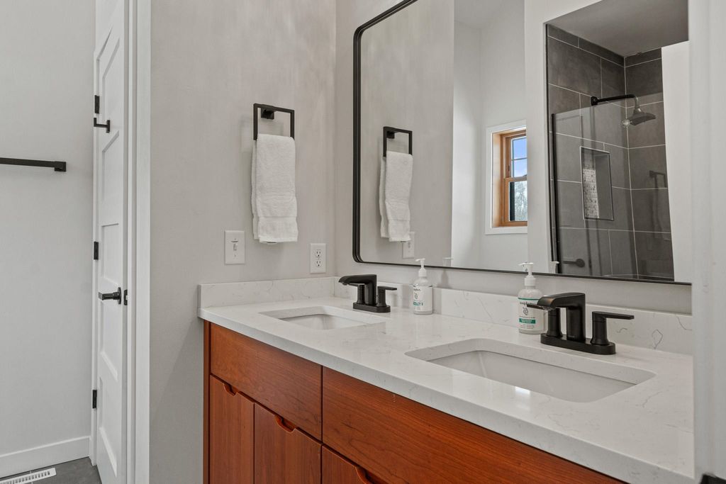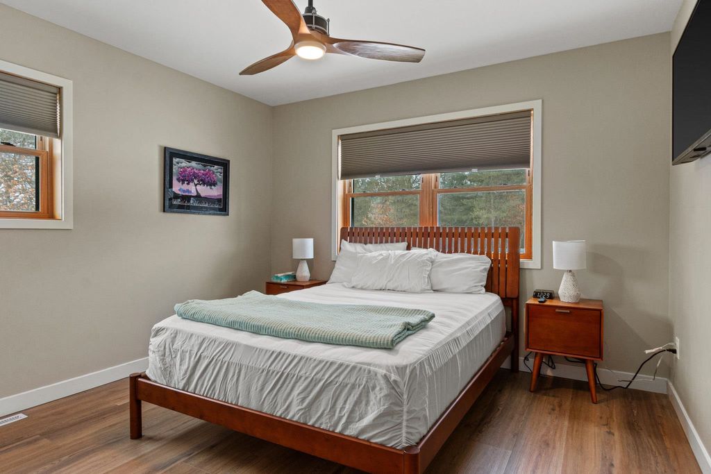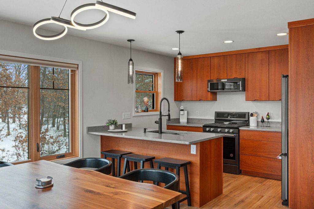 Lake Arrowhead Lake Access Home! This magnificent, nearly new home offers a contemporary design mixed w/ earthy rustic touches. Exceptionally bright, lively, and tastefully done interior with an abundance of uncommonly beautiful windows. Open design w/ towering wooden plank cathedral ceiling, stone/gas widescreen fireplace, transom windows, skylights, LVP flooring (throughout); amazing dining space w/ large windows and panoramic view; Amish kitchen w/ cherry cabinetry, granite tops, pantry & quality appliances; one of 2 bedroom suites w/ tile shower, plus 1/2 bath on main level; 2nd level w/ catwalk overlooking the living area, primary suite w/ tile shower, walk-in closet & double vanity, plus 3rd bedroom; finished LL w/ family room, widescreen electric FP, full bath, access to the patio,
