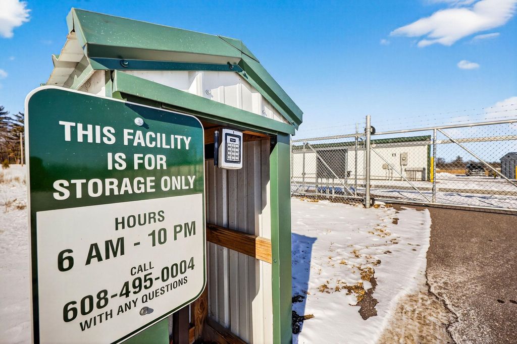 A tremendous opportunity to own a newer, thriving self-storage facility ideally located between Wisconsin Dells and Reedsburg. This property offers a strong rental history along with additional land for future expansion or alternative uses"”making it an investment you won't want to miss. The facility includes 171 indoor units in a mix of 6x10, 10x12, and 10x24 sizes, plus 83 outdoor storage spaces. The buildings are well-constructed and meticulously maintained. The entire property is fenced and secured with an electronic gate and surveillance cameras. Operations are largely online, allowing the business to be managed remotely from virtually anywhere.