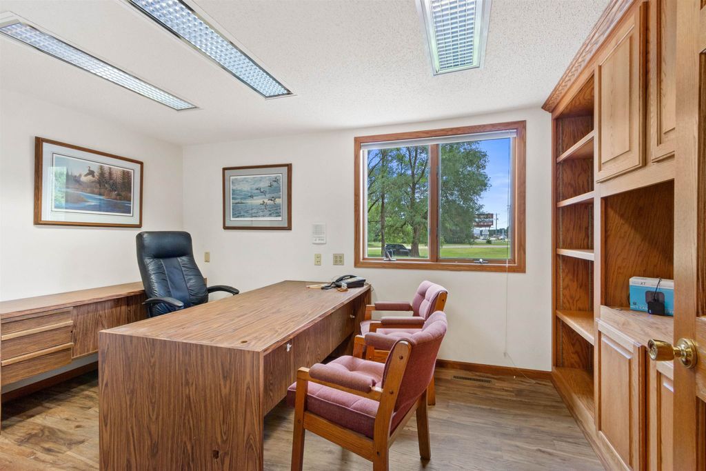 High Traffic Commercial Property located perfectly between Rome, Nekoosa and Wis Rapids! Looking for exposure? How about 365' of Frontage on State Highway 13 and 3.08 Acres, ensuring high visibility and excellent access for your business! A lot of options for expansion with 3.08 Acres! The main building features: ADA-compliant entrance; 3 private offices; Reception Area & Storage Area; Conference Space; ADA-compliant full Bathroom; 2025 LVP flooring; 2024 Roof! The Attached Heated 40x32 Workshop includes 1/2 Bath and is prepped for 2nd OH Garage Door - ideal for a variety of business uses! Additional structures include 40x80 Pole building w/12' side walls and 3 additional Storage Buildings! Lighted Road Sign & Furniture Included! Move-in Ready! Also, includes Parcel #1800158D.