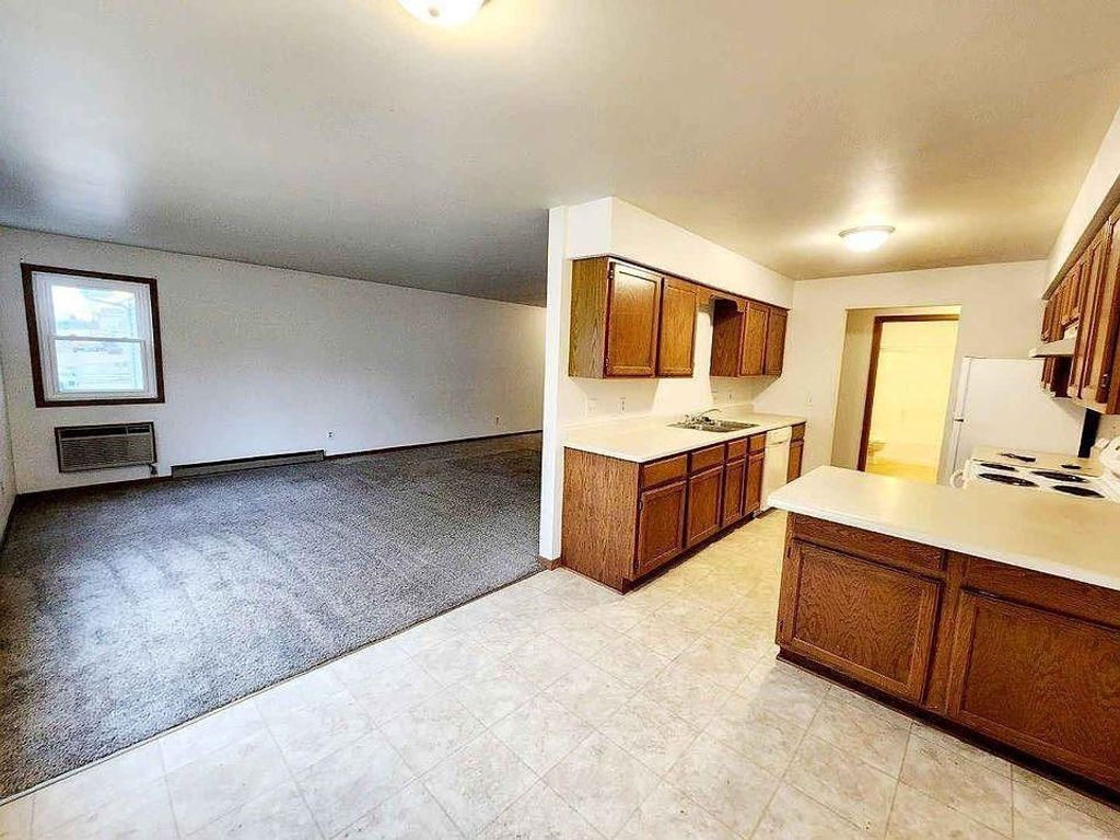FOR RENT 2 bedrooms, 1 full bath, spacious laundry room, across the street from park, convenient location, pets considered with extra fee, water, trash, lawn, & snow removal INCLUDED! Attached 1-car garage. Available March 1. Must pass background check and credit check.