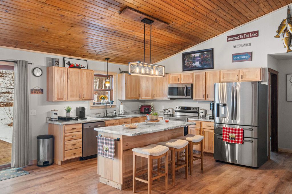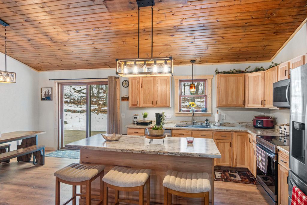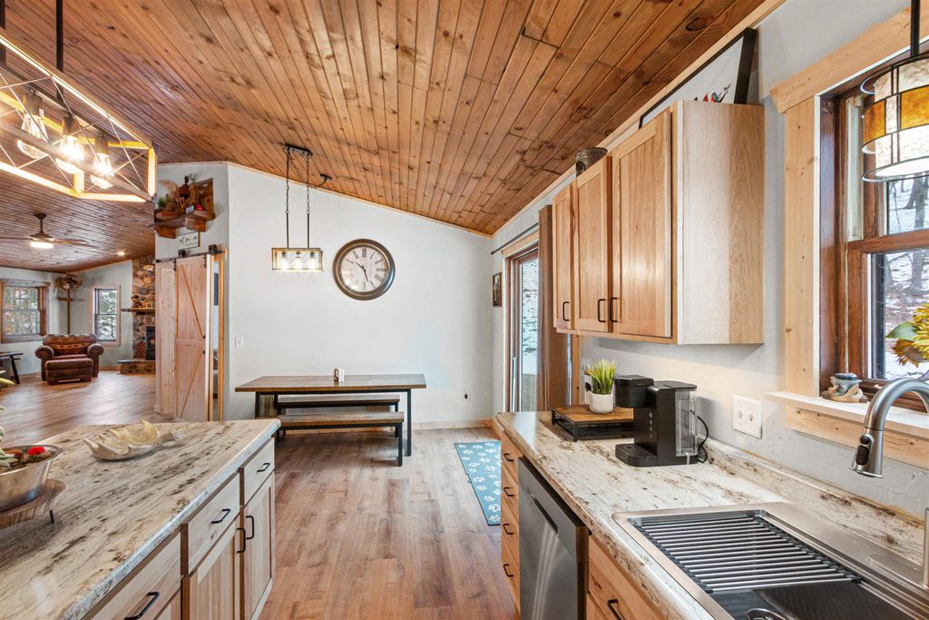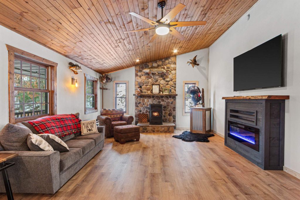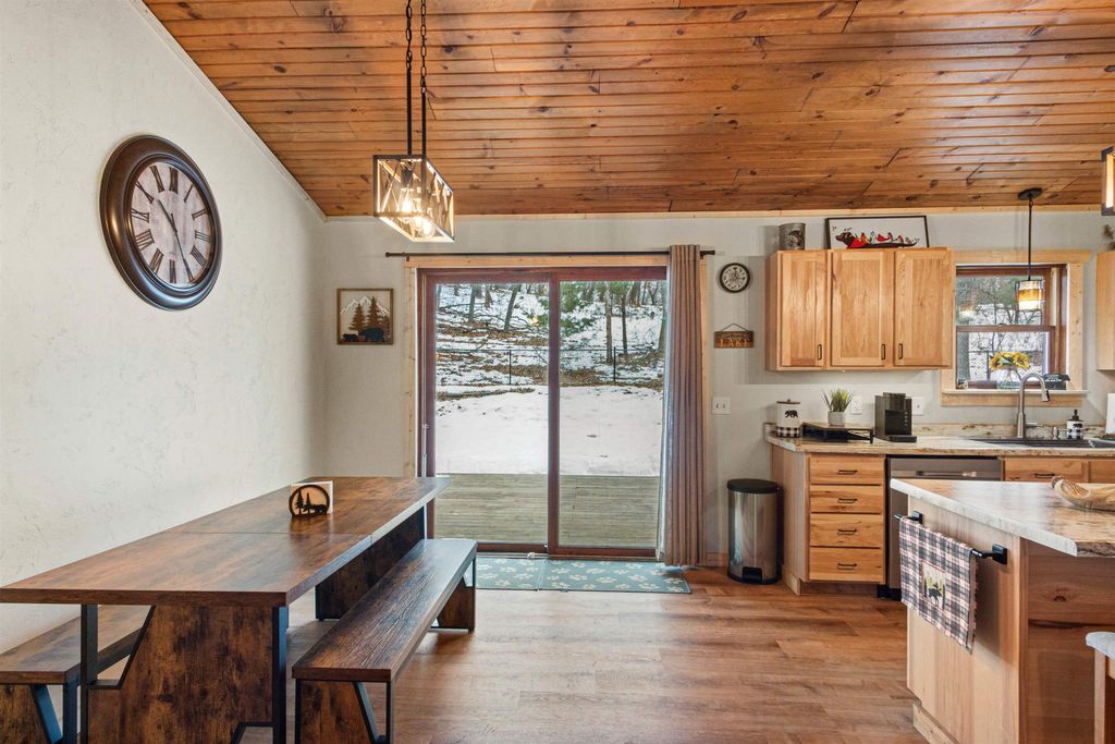 Tucked into large pines and oaks, this beautifully renovated rustic home offers rare seclusion with a deep setback from the road & fenced backyard. So many major updates are done, including a modern kitchen, refreshed bathrooms, flooring, updated furnace, fenced backyard, and rebuilt deck & entry steps. Solid construction makes it ideal as a year-round residence, up-north retreat or short-term rental. The basement is an open canvas, ready for expansion with plumbing in place for a bath and plenty of space for whatever your needs or wants may be. Owners enjoy optional association access to a private Lake Sherwood Canterbury Beach Club and slip rentals at the Sherwood Lodge. Located close to restaurants, brewery, shopping, farmers market and more!! Rome is home to 4 Lakes, several Championship Golf Courses including Sand Valley Golf Resort & Lake Arrowhead! So whether you are looking to boat, fish, golf, hike, bike, ATV/UTV, it's all right here to enjoy or relax and do nothing at all!