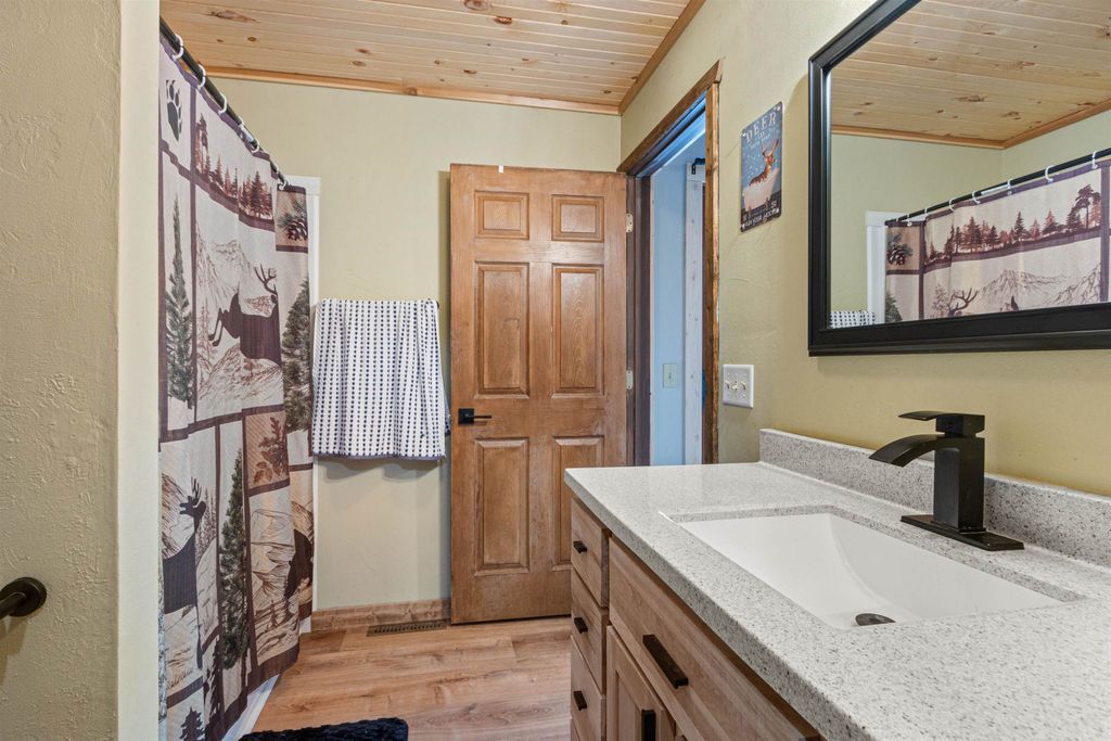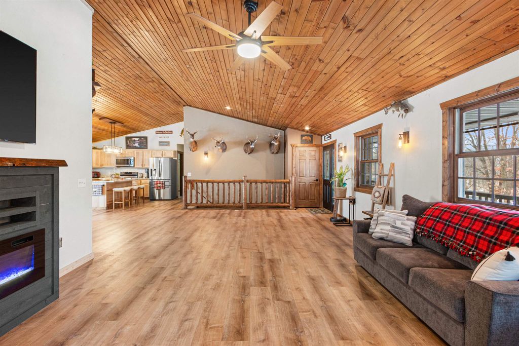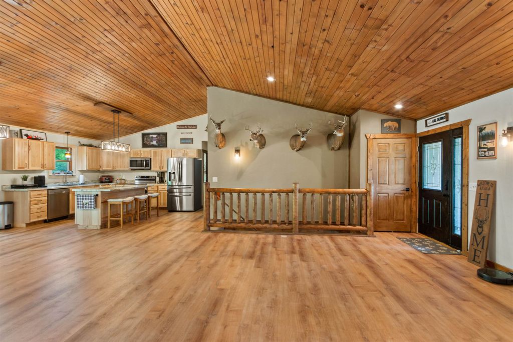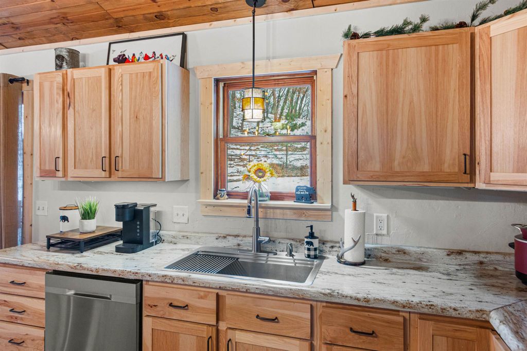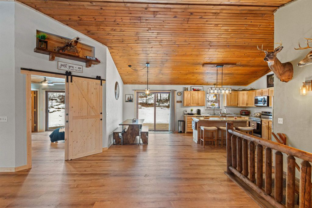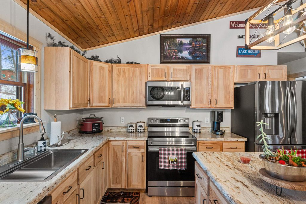 Tucked into large pines and oaks, this beautifully renovated rustic home offers rare seclusion with a deep setback from the road & fenced backyard. So many major updates are done, including a modern kitchen, refreshed bathrooms, flooring, updated furnace, fenced backyard, and rebuilt deck & entry steps. Solid construction makes it ideal as a year-round residence, up-north retreat or short-term rental. The basement is an open canvas, ready for expansion with plumbing in place for a bath and plenty of space for whatever your needs or wants may be. Owners enjoy optional association access to a private Lake Sherwood Canterbury Beach Club and slip rentals at the Sherwood Lodge. Located close to restaurants, brewery, shopping, farmers market and more!! Rome is home to 4 Lakes, several Championship Golf Courses including Sand Valley Golf Resort & Lake Arrowhead! So whether you are looking to boat, fish, golf, hike, bike, ATV/UTV, it's all right here to enjoy or relax and do nothing at all!