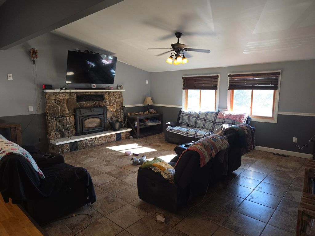 Spacious Country Ranch Features 3 BR's and 2 Baths. Large kitchen with lots of cabinets and a huge dining area with open concept to the living area with fireplace. Finished lower level with huge rec room or additional living space. Complete with 1/4 bath and 2 additional spaces for office space or other use. East half of the basement is a tuck under 2 car garage. Just shy of 1 acre and is a corner lot with road frontage on 2 sides. ATV Friendly. Just 15 minutes to Wisconsin Dells and the City of Adams. Within 20 minutes to your choice of several lakes and golf courses. Just 15 minutes to the interstate. Affordable and waiting for a new owner! Call Now!
