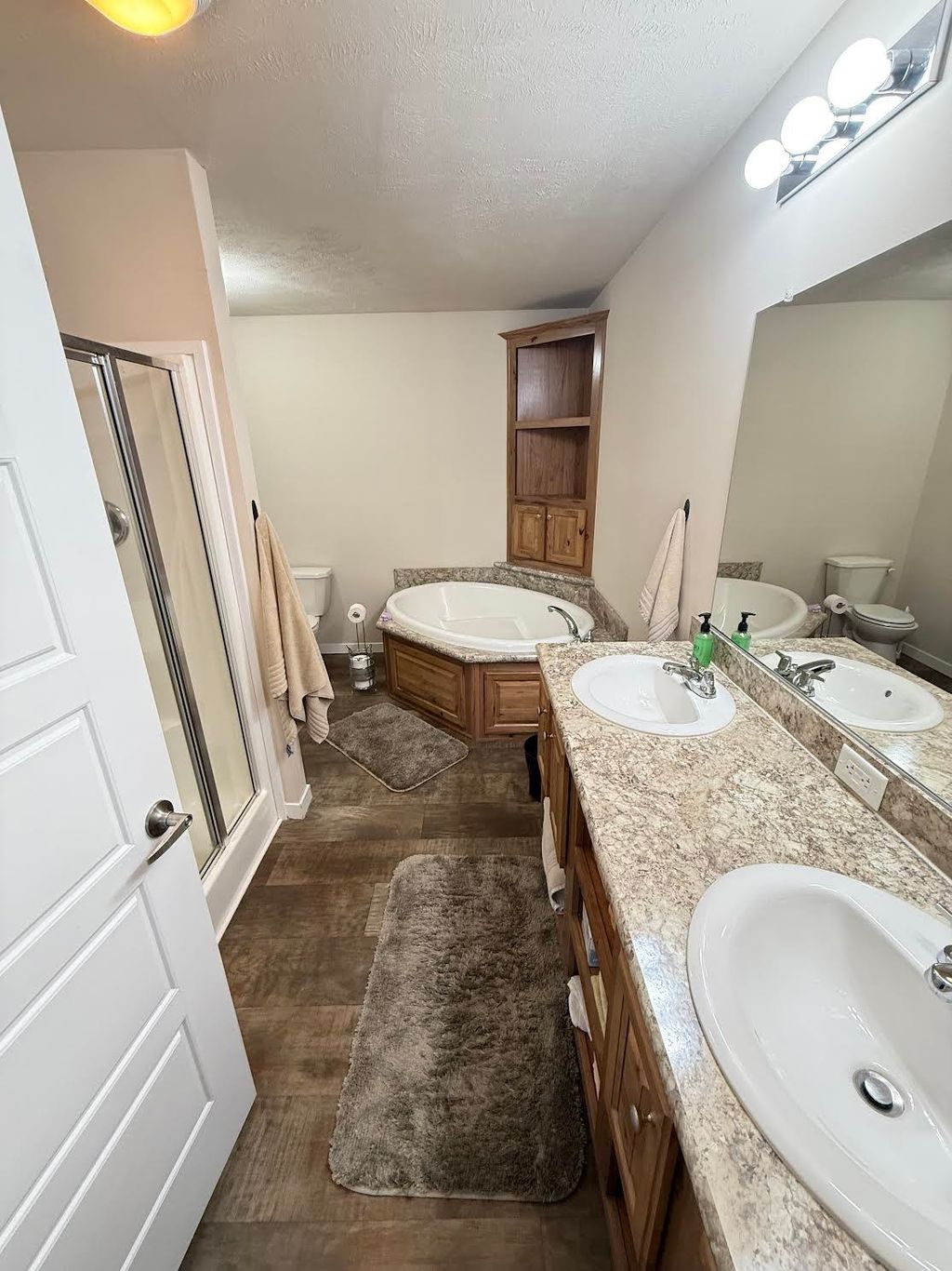 THIS IS A MANUFACTURED HOME! MONTHLY LOT RENTAL IS $825 PER MONTH AND INCLUDES GARBAGE PICK UP AND MAINTENANCE OF ROADS. OWNER PAYS SEWER/WELL WATER ($25-$35/MONTH) AND PERSONAL PROPERTY TAX MONTHLY OF $17 APPROX. 2 pets allowed, 1 cat and 1 dog or 2 cats, dog breeds limited (mostly based on HOA meeting the dog, no certain breed restrictions) Awesome 2 BA 2 BA manufactured home! Open concept living room is open to the huge eat-in kitchen with dining area! HUGE patio for outdoor entertaining! Nice yard with large shed included, low maintenance living! 2 car attached garage. 3 nice sized bedrooms, 2 full baths with whirlpool, and a nice laundry area! Rented water softener, $66 every 3 months. See this one today!