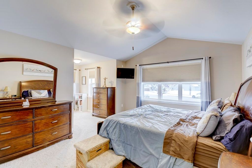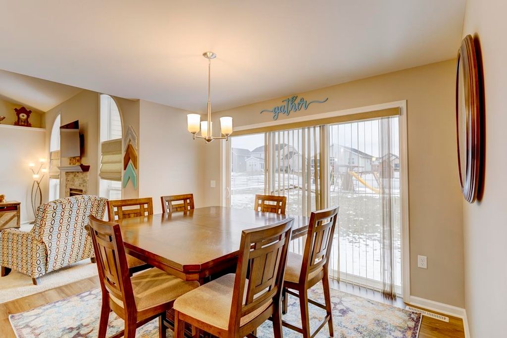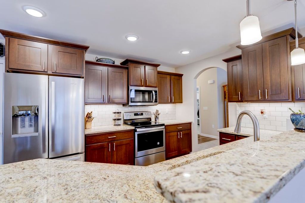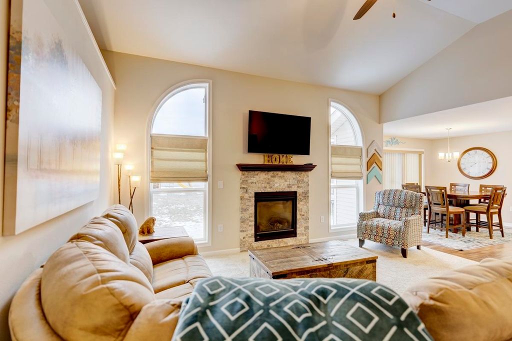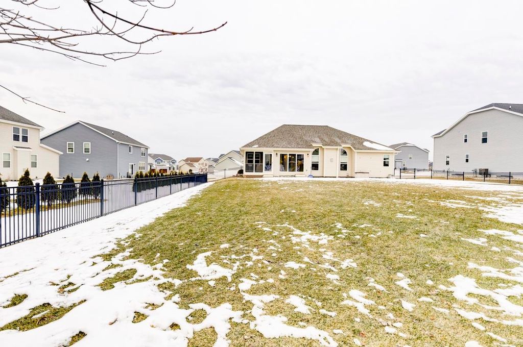 Beautiful ranch home with 3-car garage on a .44 acre lot in a family-oriented neighborhood. Enter the foyer with vaulted ceilings and plenty of natural light. Boasts 4 bedrooms, 3 baths with a large fenced in yard. Master suite with a sitting area, walk-in closet, and jetted tub in ensuite bathroom. Split bedroom layout. Custom built-in shelves in one of the secondary bedrooms. Open floor plan with kitchen, living room, and dining areas. Finished lower level with a large 4th bedroom with egress, full bathroom, large entertaining space with living room, game room with a new pool table, and custom designed bar. Enjoy summer evenings on your screened-in porch off the kitchen. Large backyard with a Play N Wisconsin playset. Close to schools and easy access to highway and interstate.