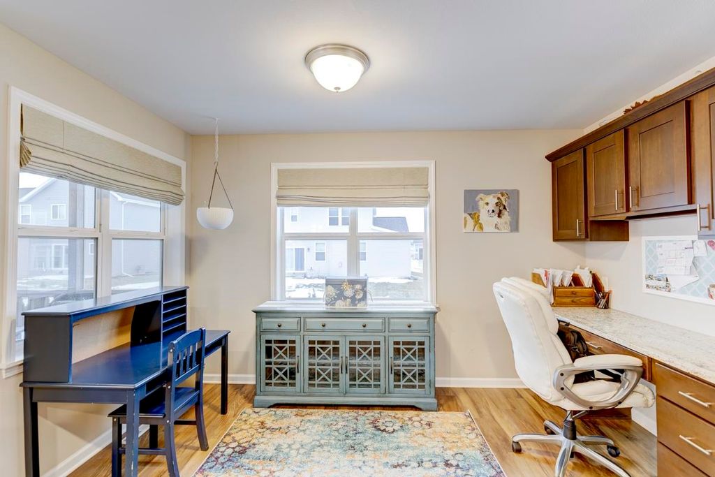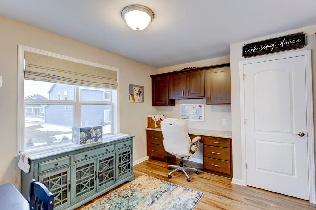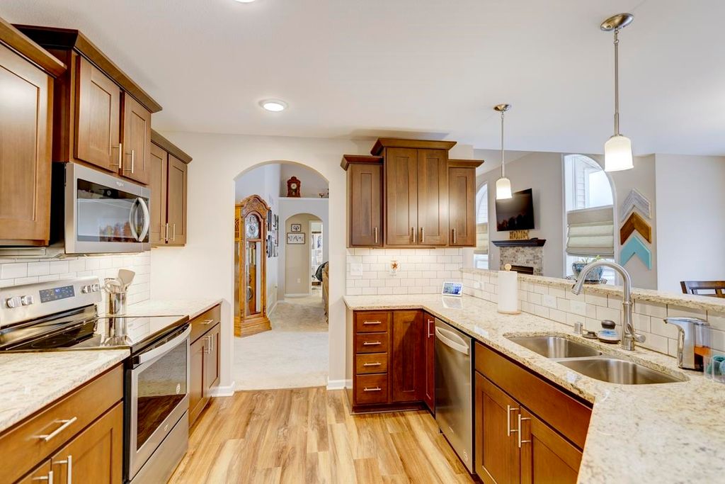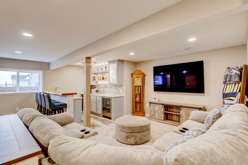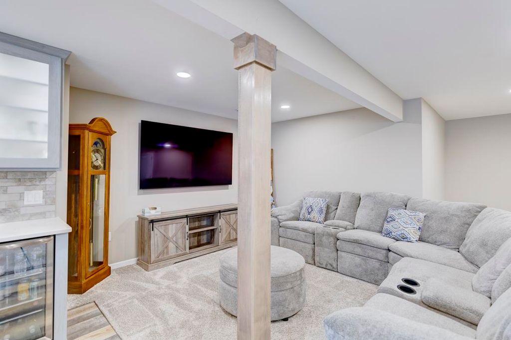 Beautiful ranch home with 3-car garage on a .44 acre lot in a family-oriented neighborhood. Enter the foyer with vaulted ceilings and plenty of natural light. Boasts 4 bedrooms, 3 baths with a large fenced in yard. Master suite with a sitting area, walk-in closet, and jetted tub in ensuite bathroom. Split bedroom layout. Custom built-in shelves in one of the secondary bedrooms. Open floor plan with kitchen, living room, and dining areas. Finished lower level with a large 4th bedroom with egress, full bathroom, large entertaining space with living room, game room with a new pool table, and custom designed bar. Enjoy summer evenings on your screened-in porch off the kitchen. Large backyard with a Play N Wisconsin playset. Close to schools and easy access to highway and interstate.