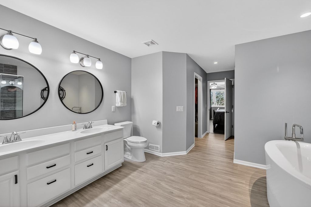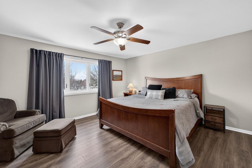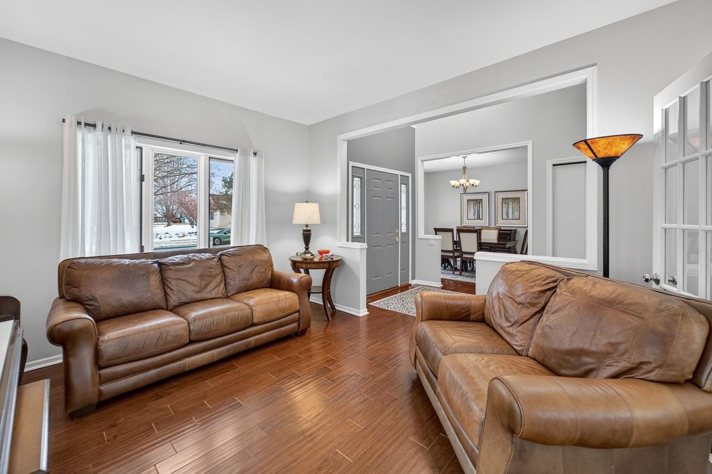 First time on the market in 23 years and you'll understand why. Extensively updated throughout and backing to a city park, this home offers privacy and a prime setting. The main level features a remodeled kitchen with quartz countertops, stainless steel appliances, and a center island, plus a cozy living room with gas fireplace, den/office, formal dining room, and mudroom. The primary suite includes dual walk-in closets and a private ensuite with a walk in shower and separate soaking tub. The finished lower level adds 894 sq ft with a rec area, family room with wet bar, bedroom, and full bath - ideal for entertaining guests. Relax on the stamped patio overlooking the park and enjoy the stunning sunset views. The convenience of a (rare) 3-car attached garage is the cherry on top.