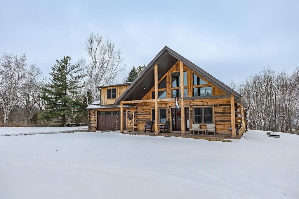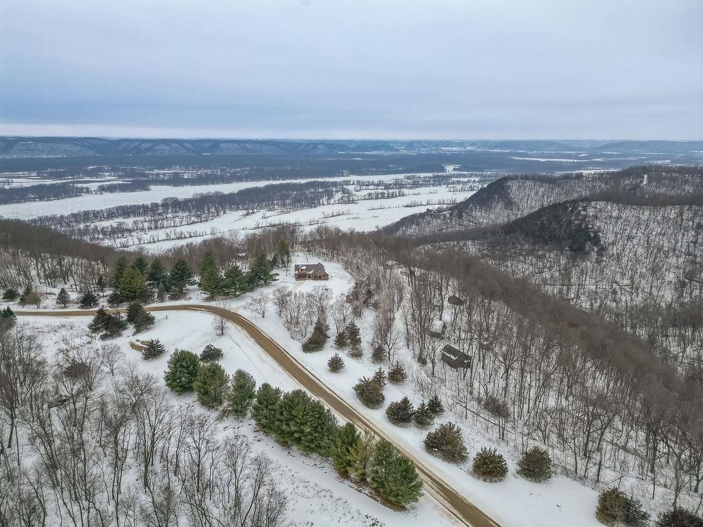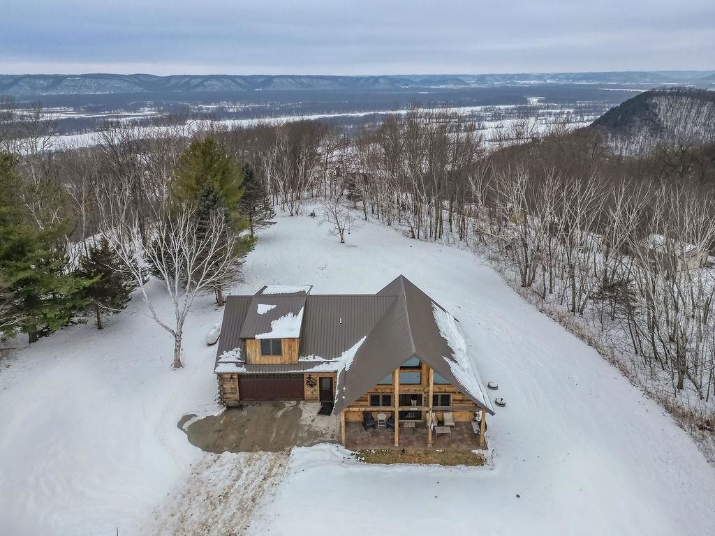 Beautiful 3bdr 2.5 bath log home perched on a wooded bluff above pool 9 of the Mississippi River. This custom built log home feels like a private retreat in the heart of Wisconsin's Driftless Region. Start your day with sunrise coffee on the front porch and end it with sunsets from the back patio as the sun drops behind the Iowa Bluffs. Set on just over 3 peaceful acres of birch and pine, deer and turkeys wander through the quiet landscape. Inside warm wood tones, a stone fireplace, and Amish built details create a timeless welcoming feel. Relax by the firepit on cool evenings or head down to one of the regions premier fishing spots-serene when you want stillness, active when you don't. This beauty won't last long. Call today for your private showing.
