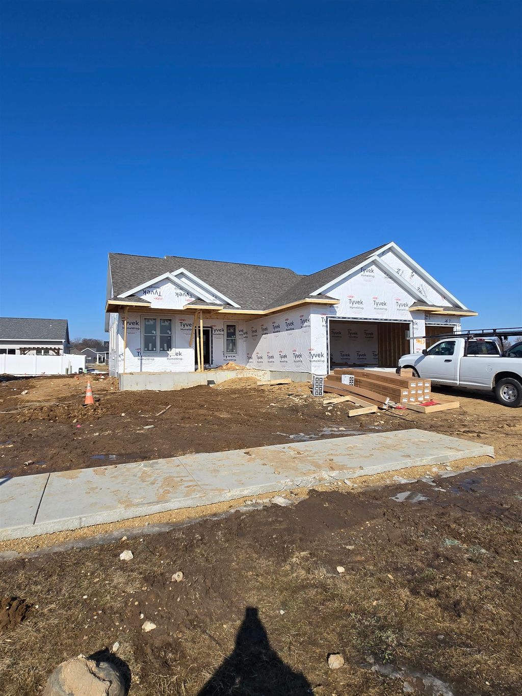 Estimate completion date April 2026. Beautiful 1,815 sq ft new construction home in a desirable Milton subdivision, located in the popular Milton School District. This 3-bedroom split-bedroom design offers privacy and functionality with an open-concept layout, cozy fireplace, and quality Anderson windows throughout. The kitchen features stunning custom-built Amish cabinetry and flows seamlessly into the dining and living areas"”perfect for entertaining. The spacious primary suite includes a walk-in closet and custom tile shower. Two additional bedrooms, main floor laundry, and a convenient mudroom add everyday ease. The lower level has two egress windows, plus rough-in plumbing bathroom, ideal for extended living space. Minutes from Milton and Janesville shopping, with easy access to I-90 and Hwy 26. A perfect blend of quality, location, and future potential! North on cty Y east on wright rd east on Samson